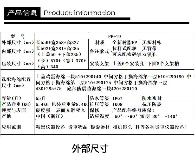 厂家直供安保得PP-19空箱 设备防震箱无人机防护箱防水防潮箱拉杆