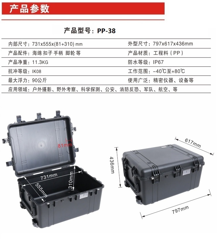 安保得PP-38高强度抗震防水拉杆箱安全箱防水箱仪器工具箱设备箱