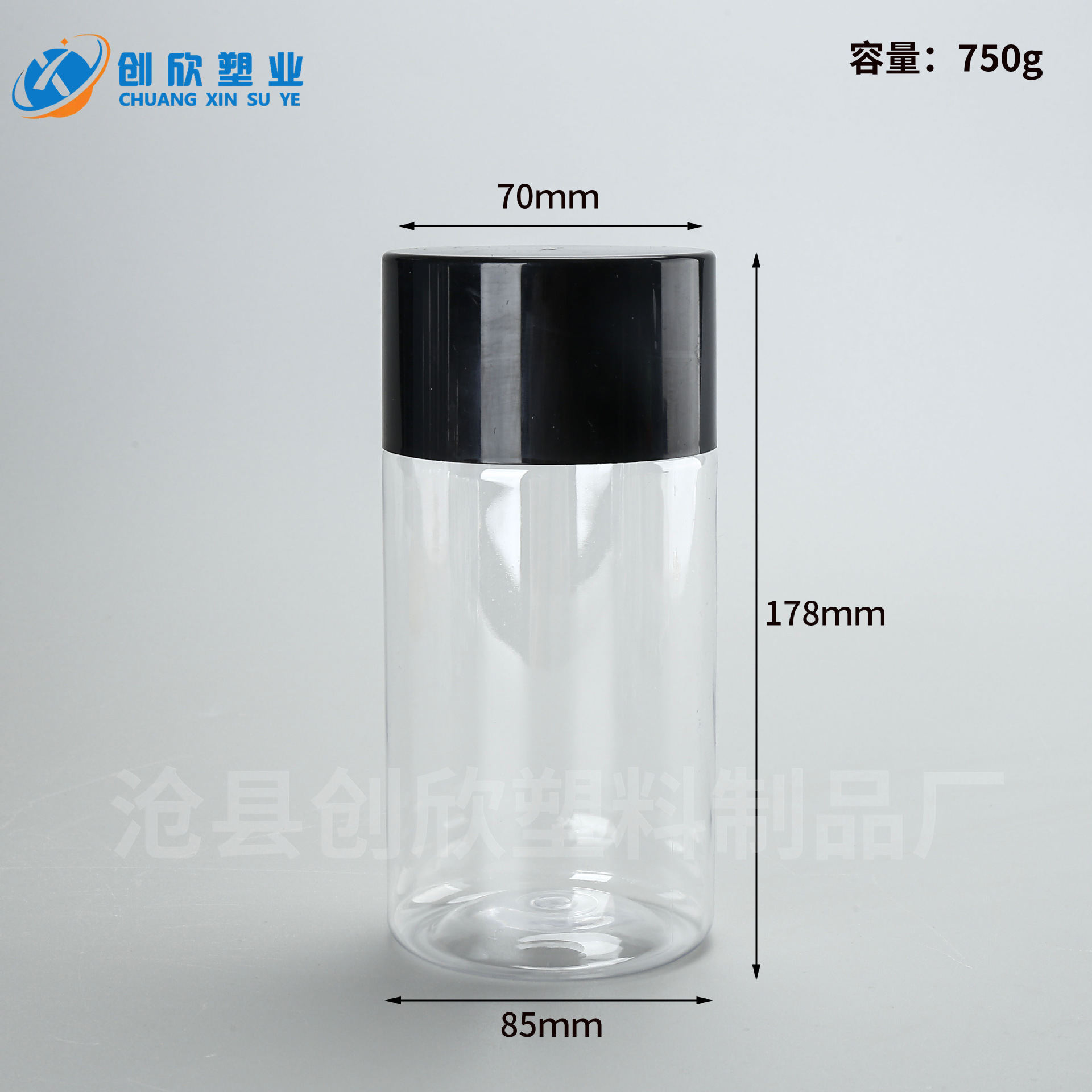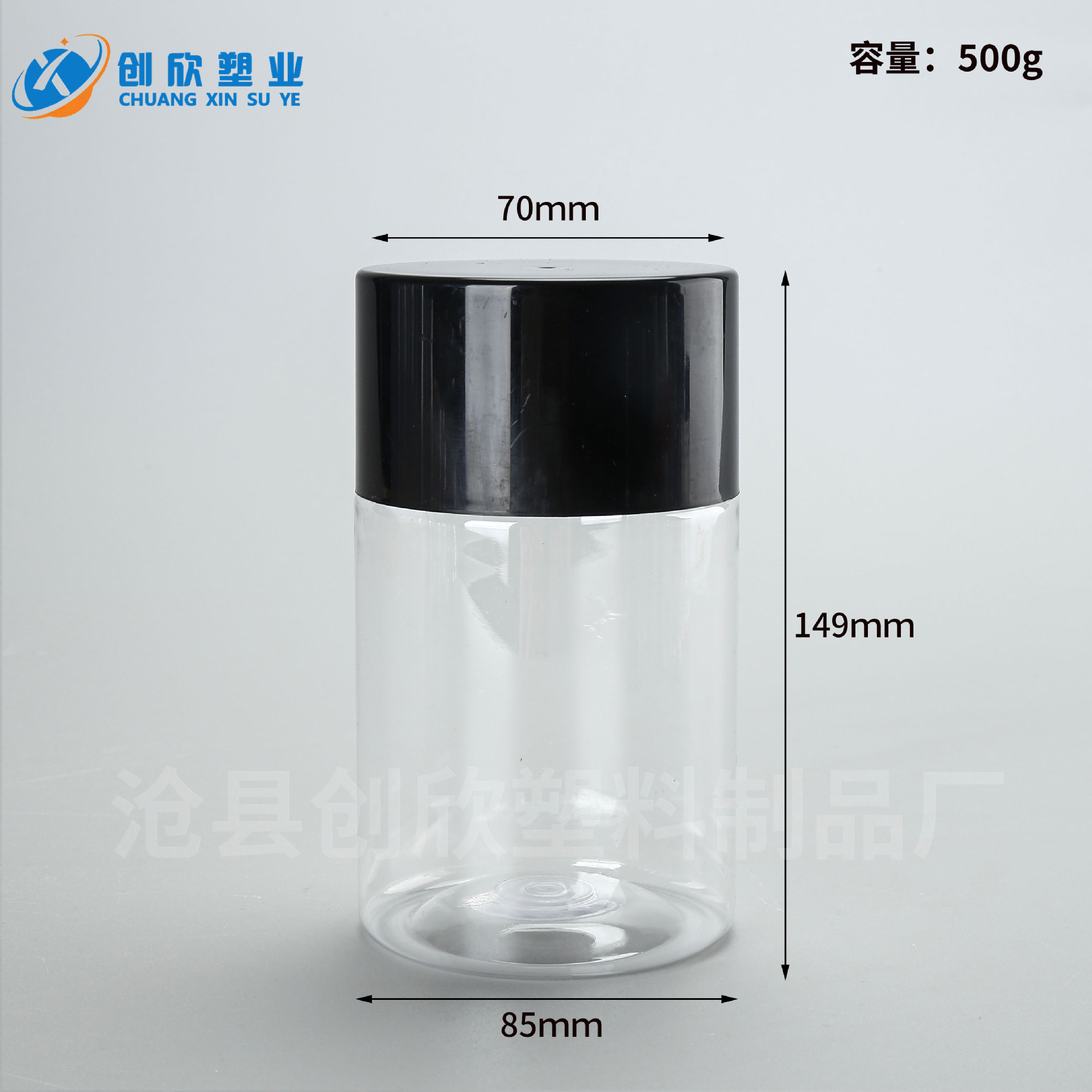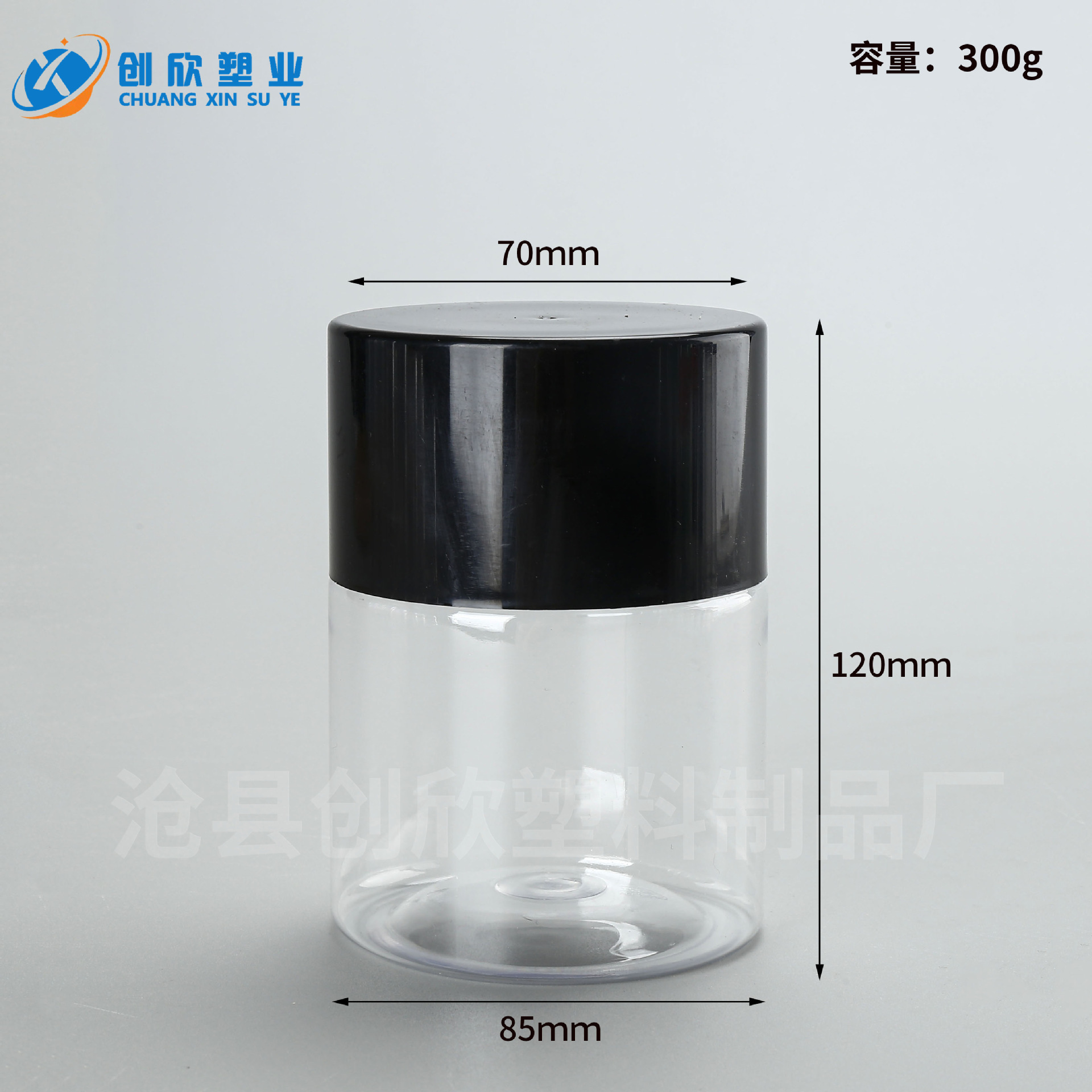 500g花茶罐黑色大帽盖密封收纳塑料罐子pet300g750克透明坚果包装