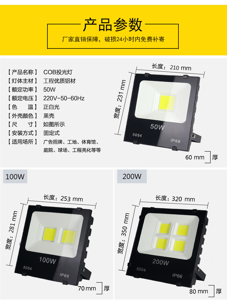 - 产品规格:50W-COB足瓦远射豪华款-白光