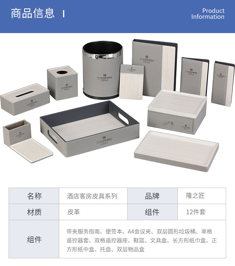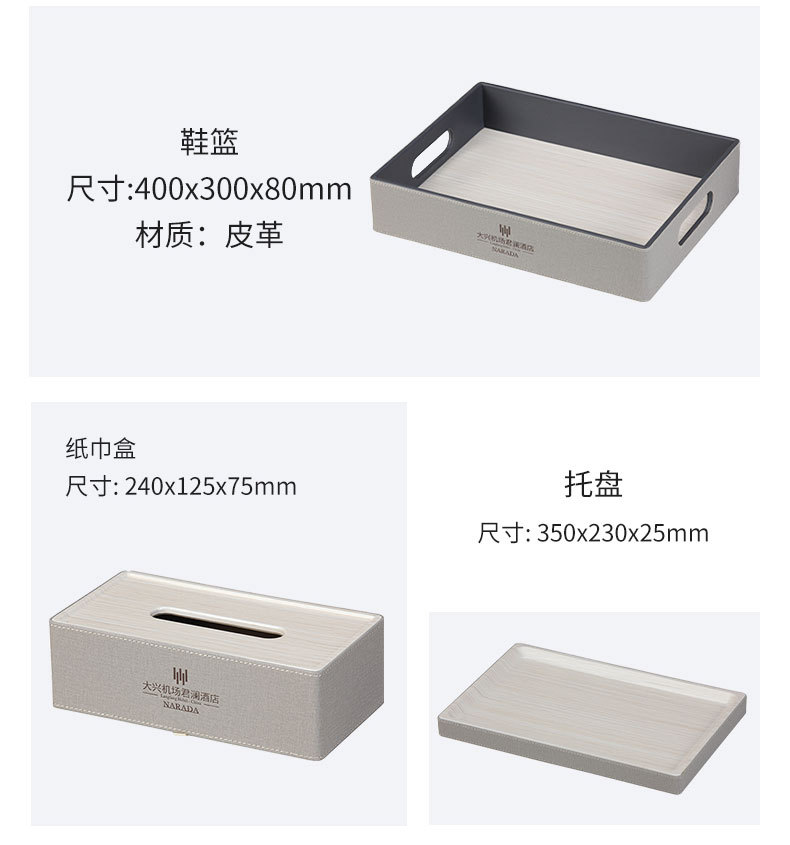 酒店宾馆民宿防水洗漱品收纳盒托盘纸巾盒服务指南夹皮具用品套装