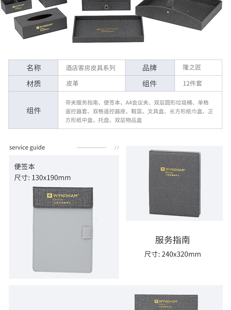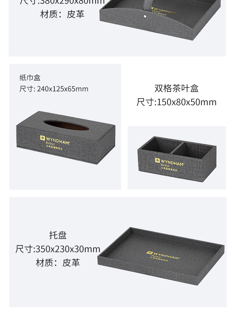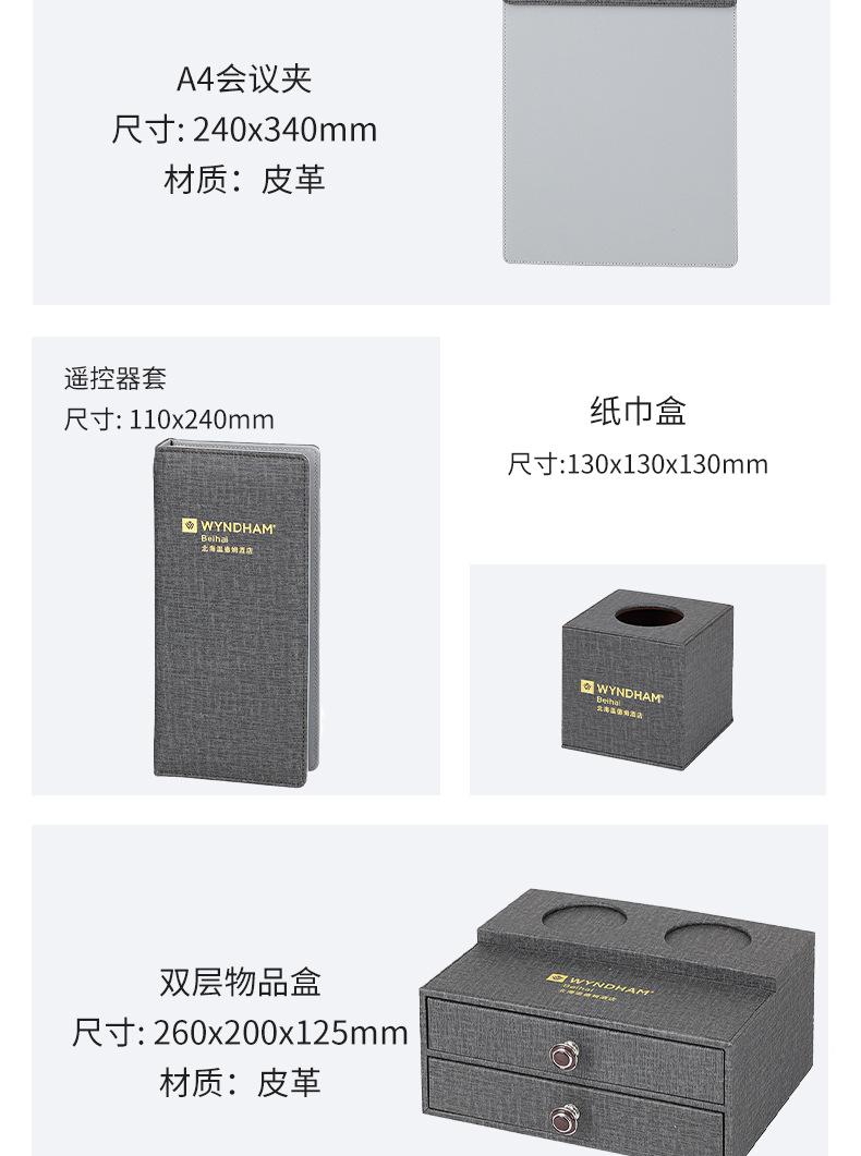灰色收纳套装纸巾盒便签本遥控器座工厂直销logo酒店客房皮具用品