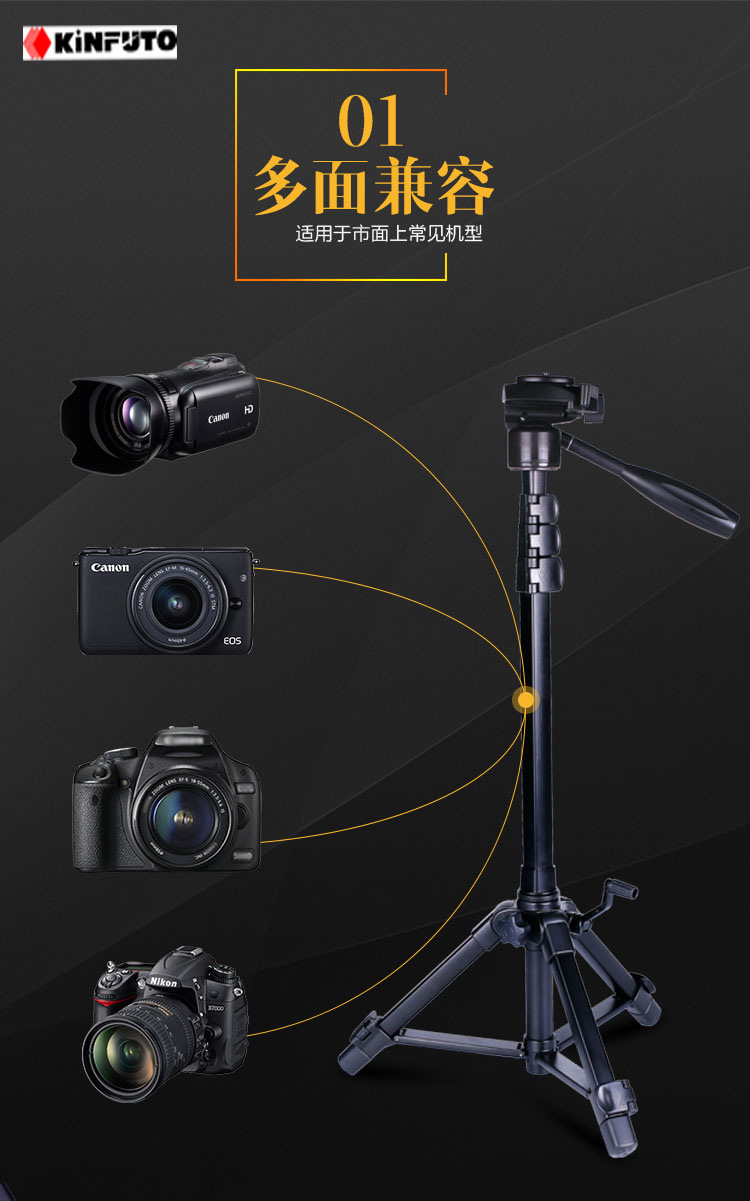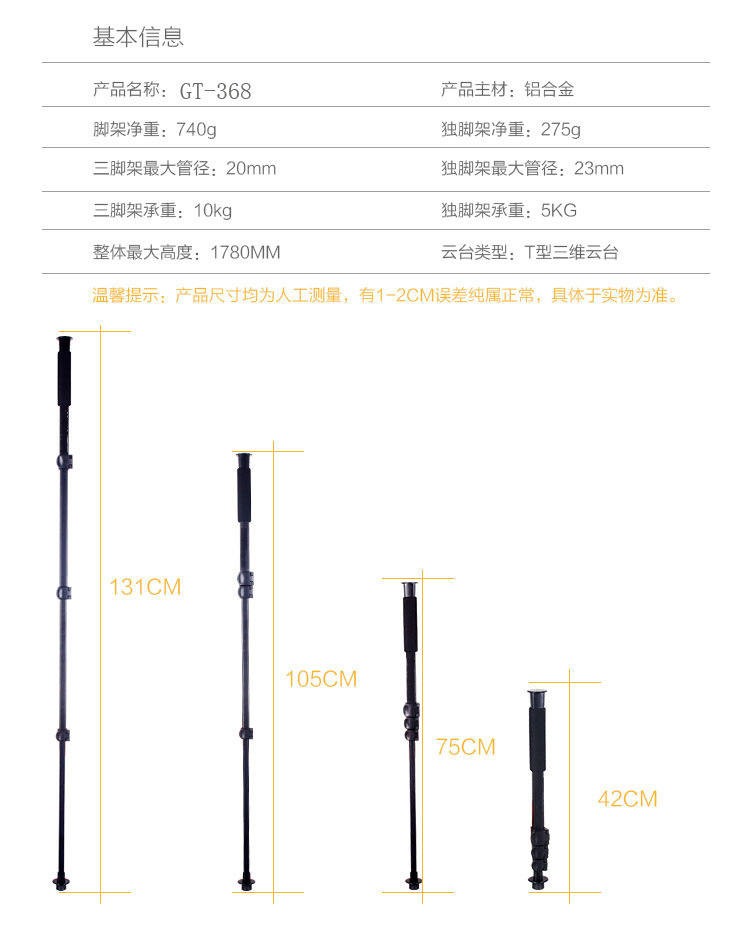 金福图GT-368相机手机三脚架 多功能便携支架 钓鱼灯支架超轻支架