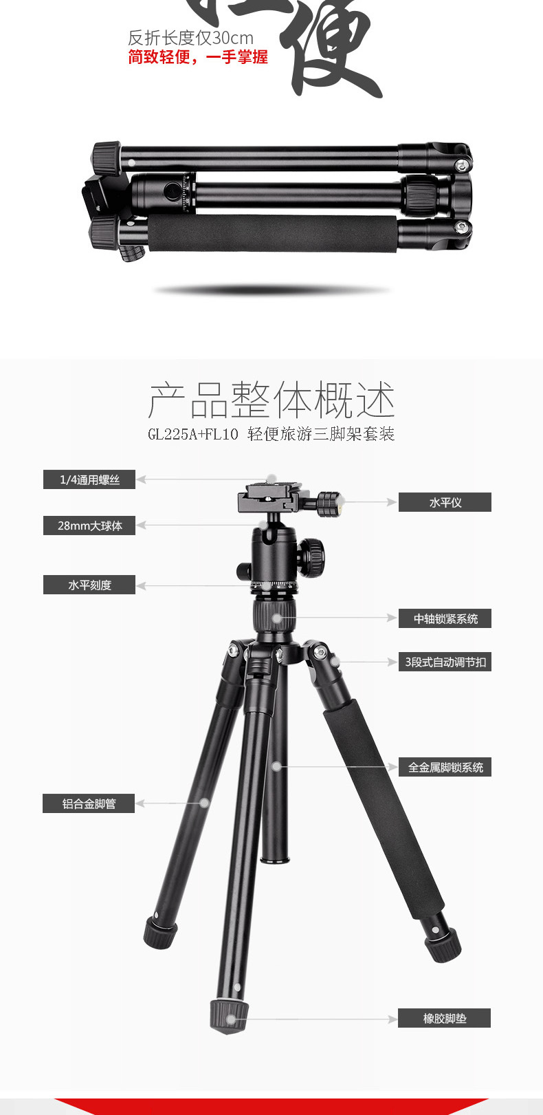 KINFUTO牌GL225A+FL10单反相机便携网红手机三脚架直播三脚架支架