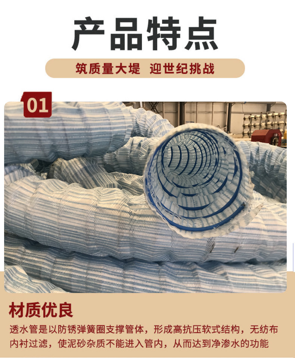 园林绿化软式pvc透水管高碳钢丝渗透软管地基隧道公路排水管批发