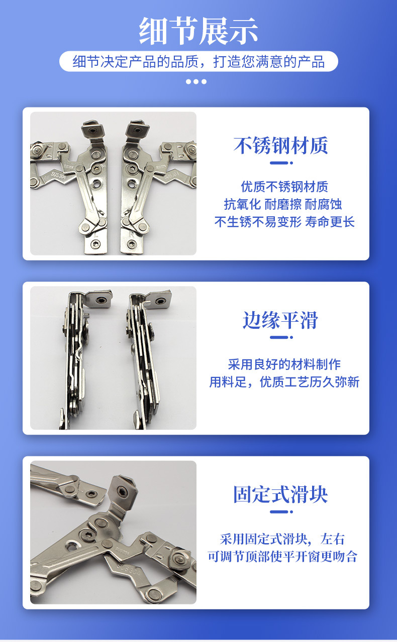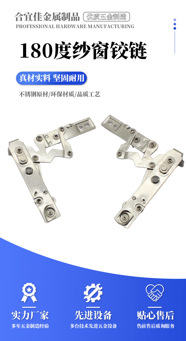 工厂定制纱窗铰链304不锈钢铰链180度隐形滑撑配件撑推拉断桥铰链