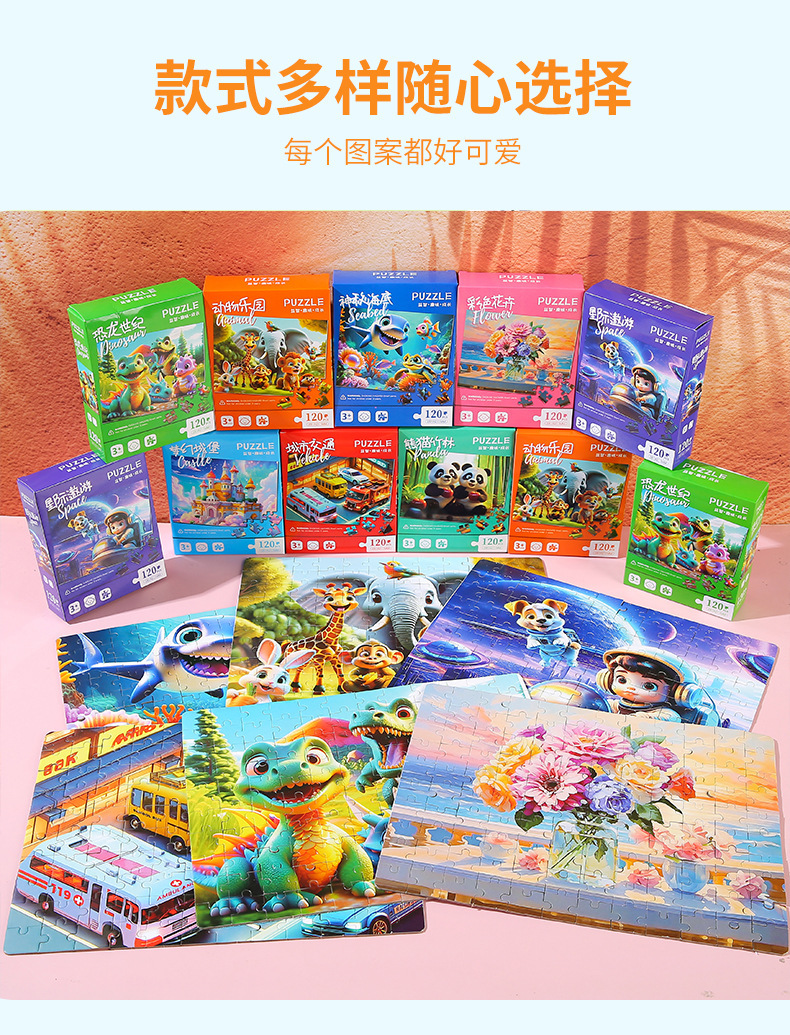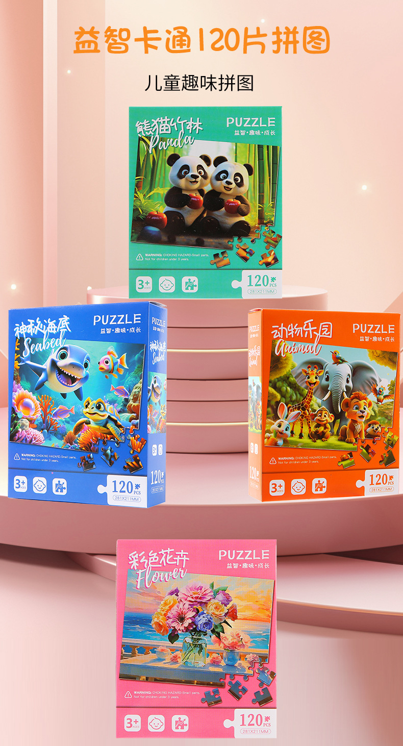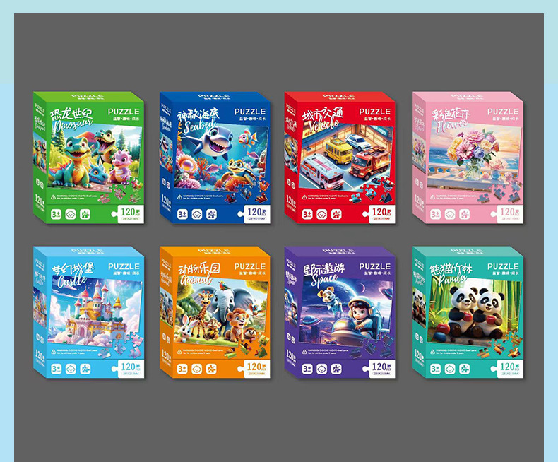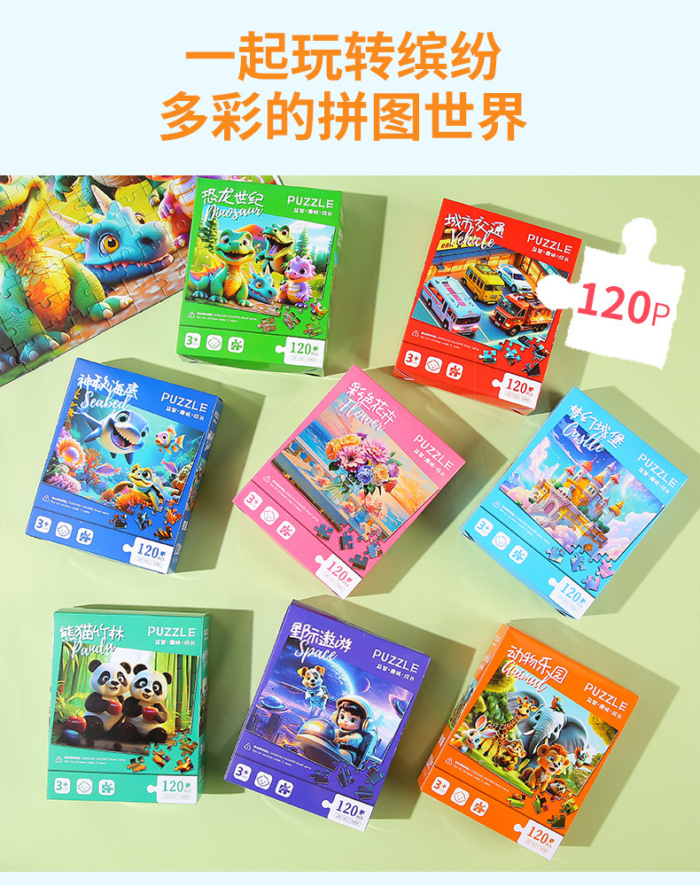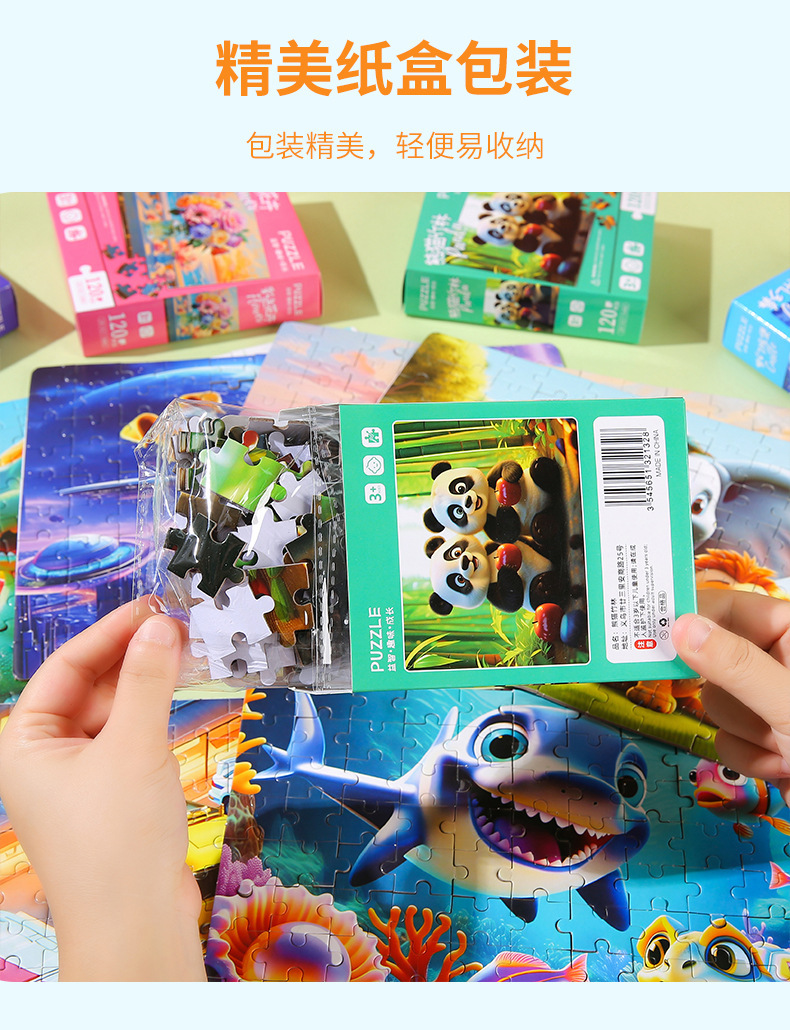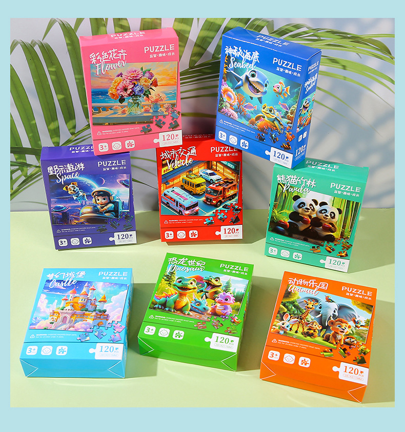 120片儿童益智拼图早教盒装平面纸质玩具幼儿园奖品礼物礼品批发