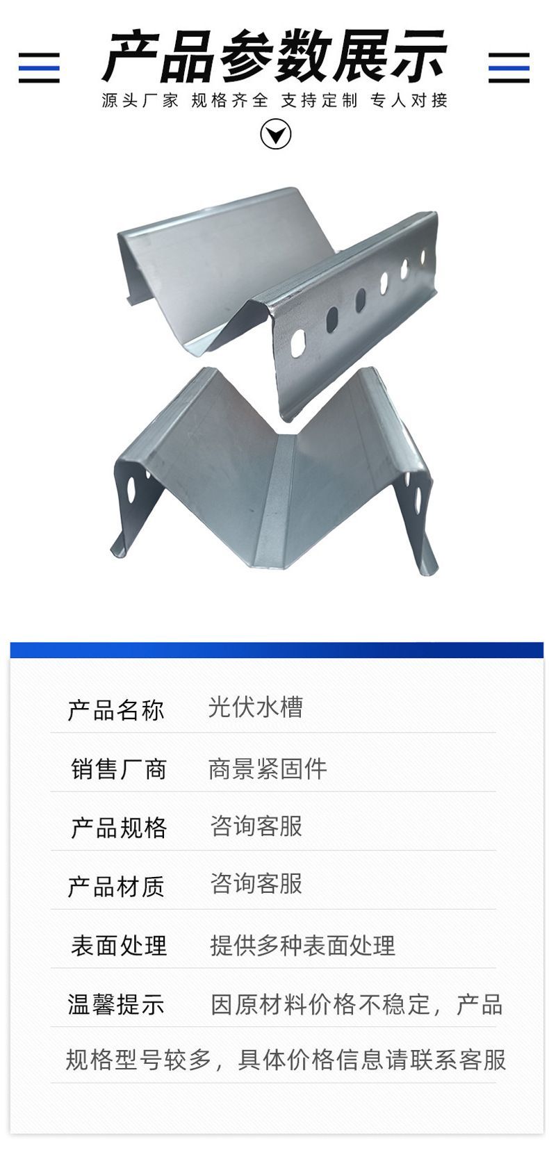 光伏锌铝镁防水槽包边横向光伏支架配件用M型电池板组件水槽