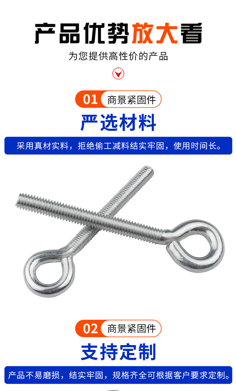 铁镀锌羊眼机牙螺丝金属闭口吊环活节手拧挂钩配件杯钩工具螺栓
