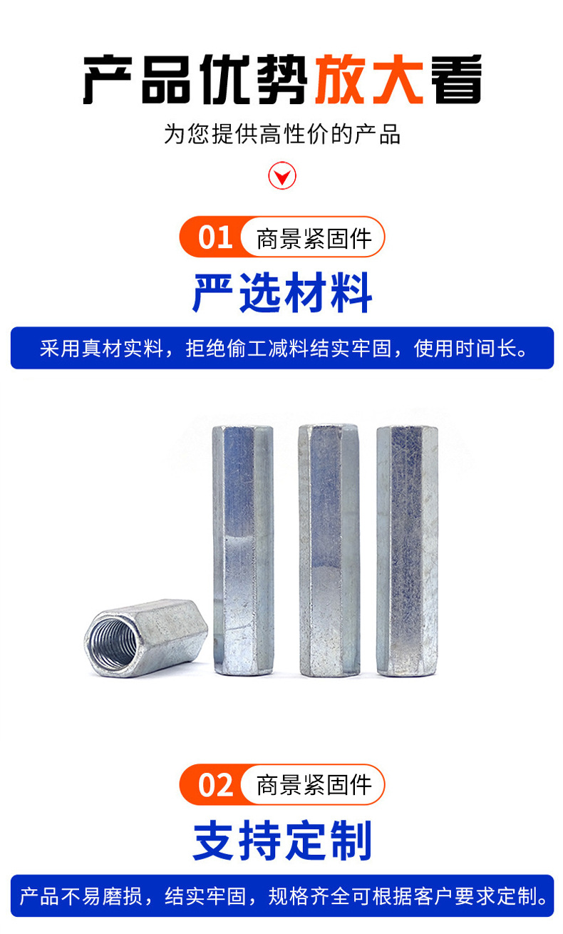 接头母镀锌加长六角螺母加长圆螺母接头螺杆用连接抗震工具螺丝