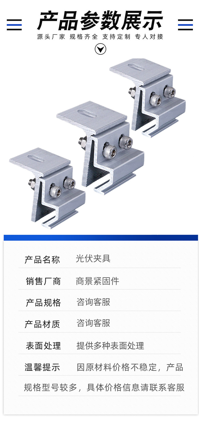 • 型号:定制光伏夹具