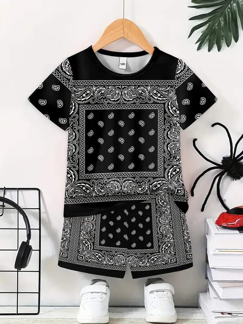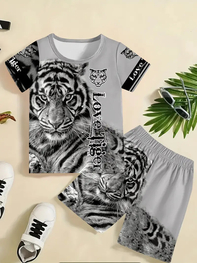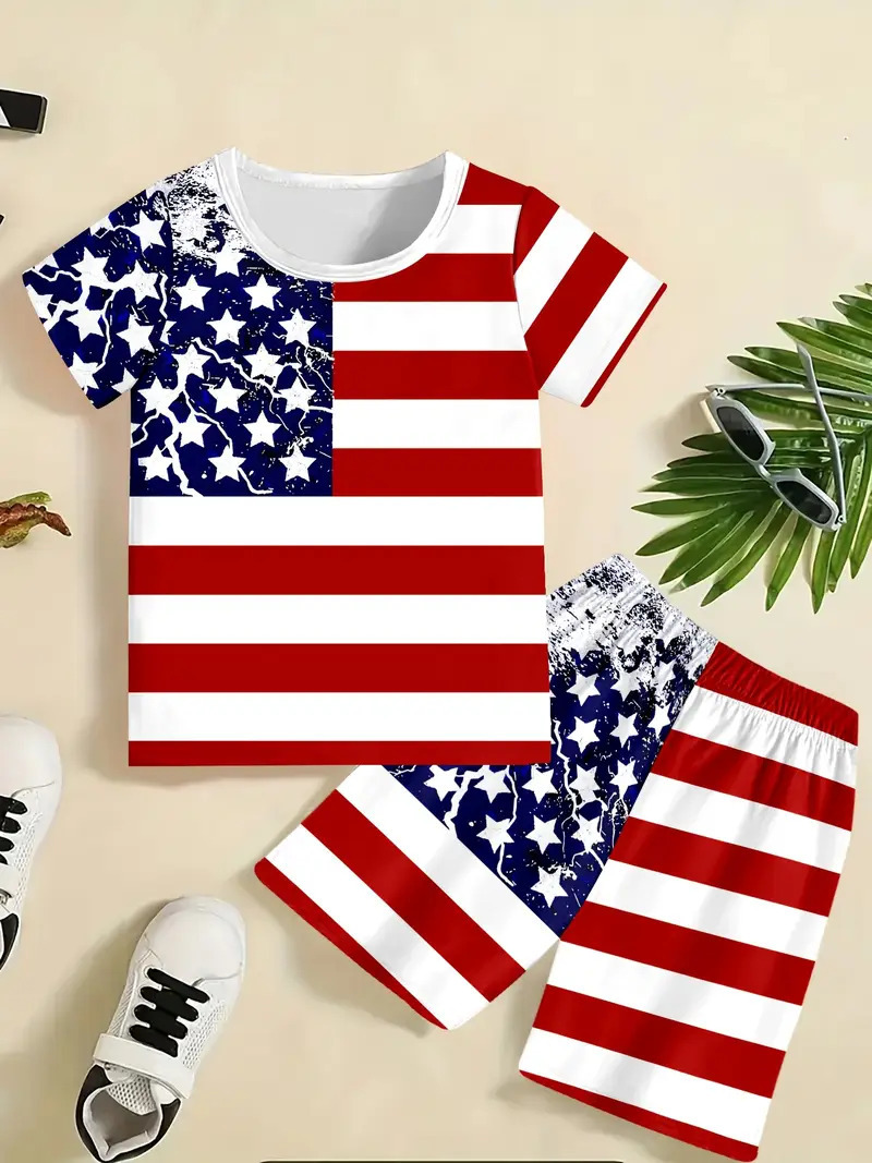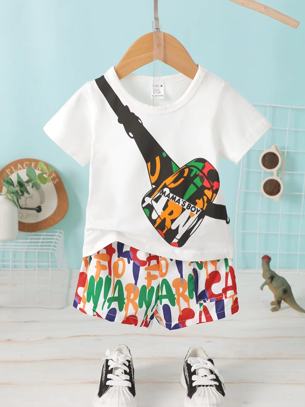 夏季男童套装短裤短袖休闲欧美童装一件代发