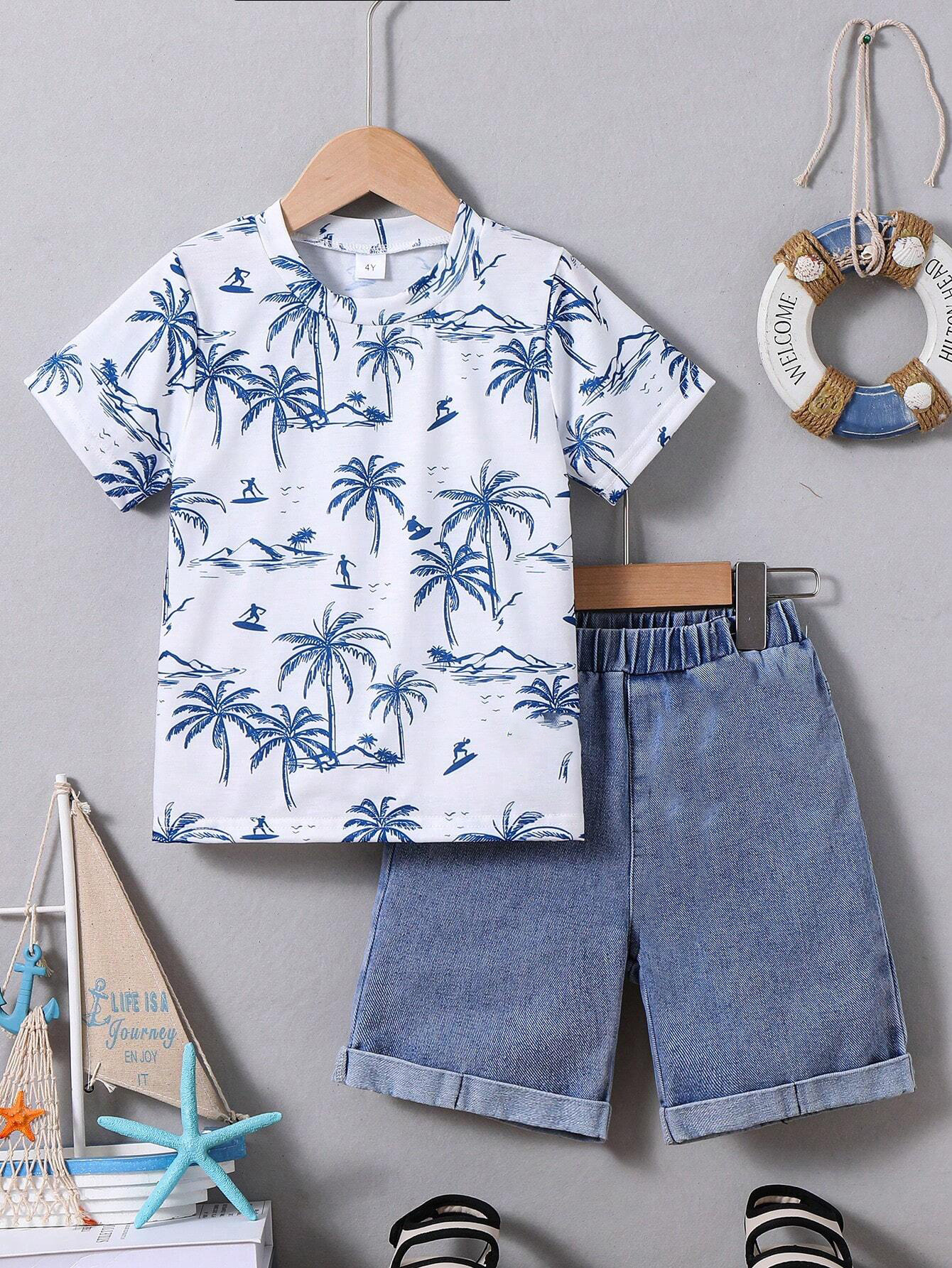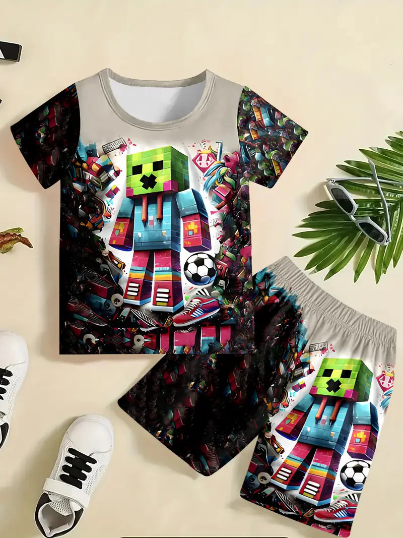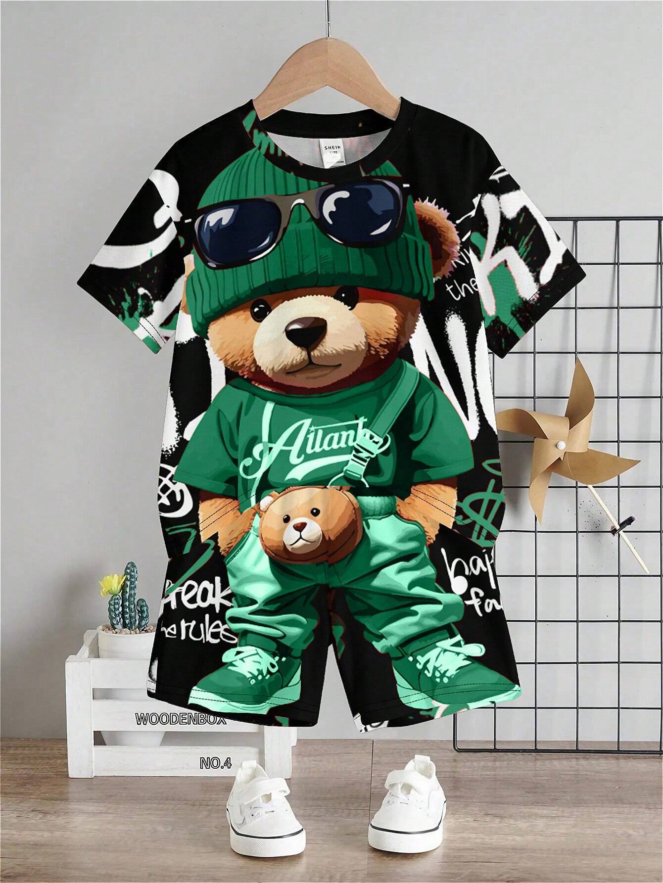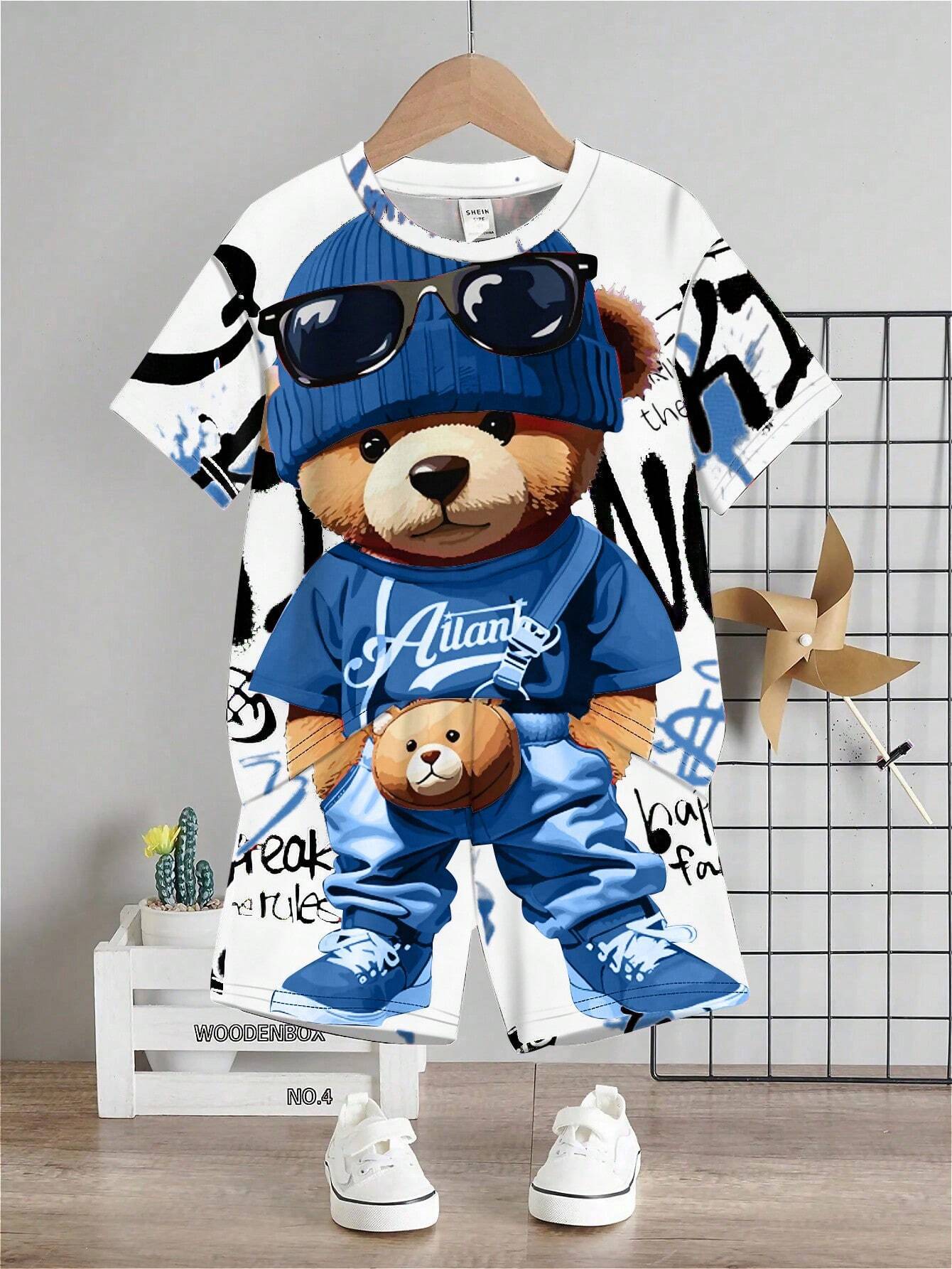 夏季男童套装短裤短袖休闲欧美童装一件代发