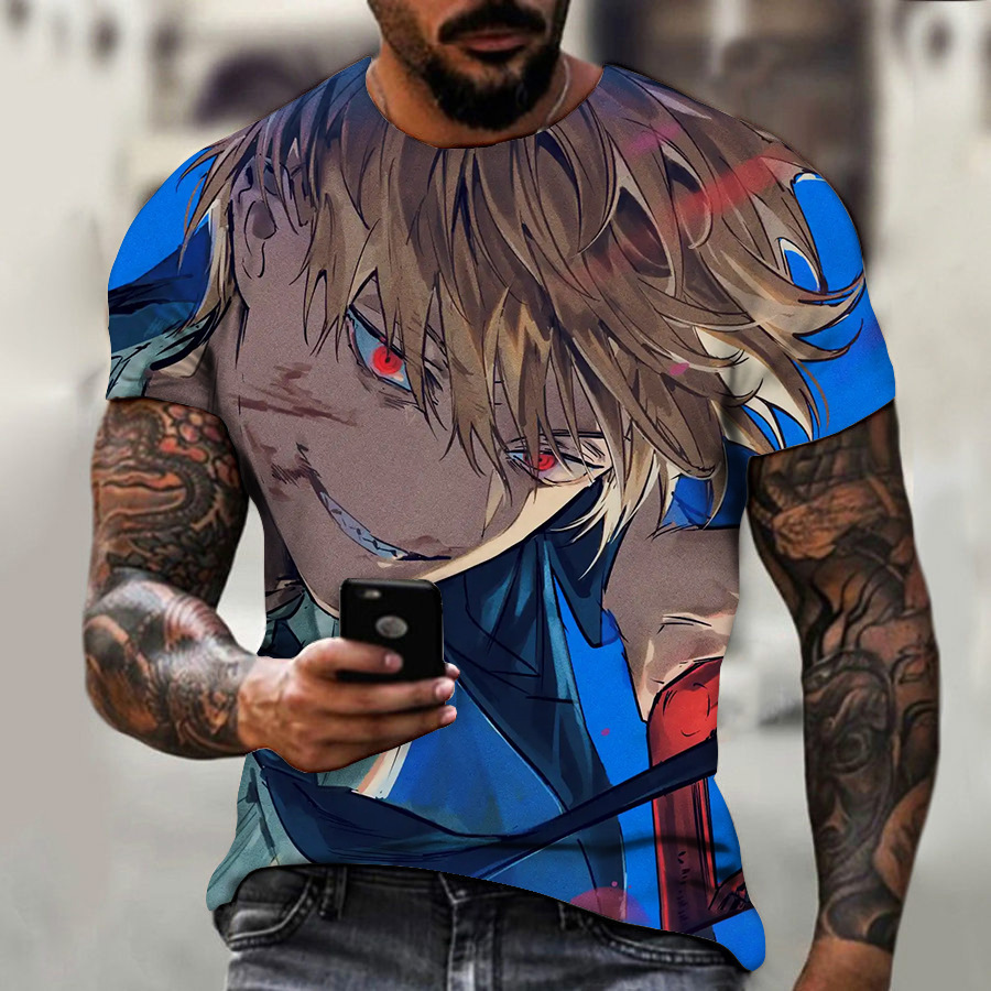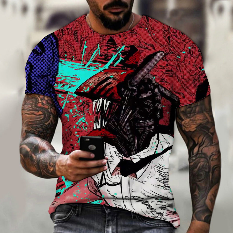 2024跨境外贸 新款T恤3D数码印花男士街头宽松运动衫休闲T恤