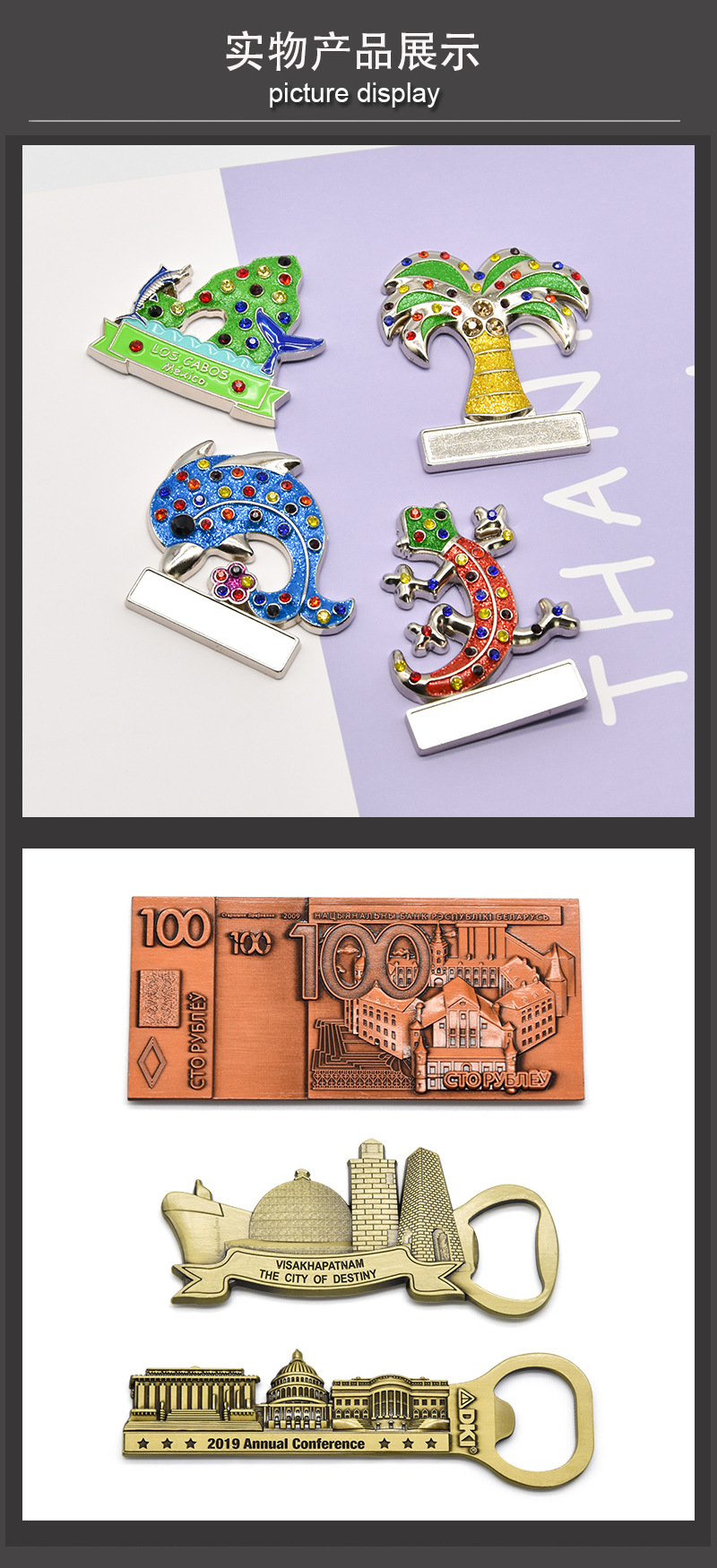 磁吸卡通金属冰箱贴定做电镀漆烤工艺锌合金材质家具布置装饰用品