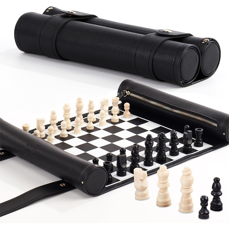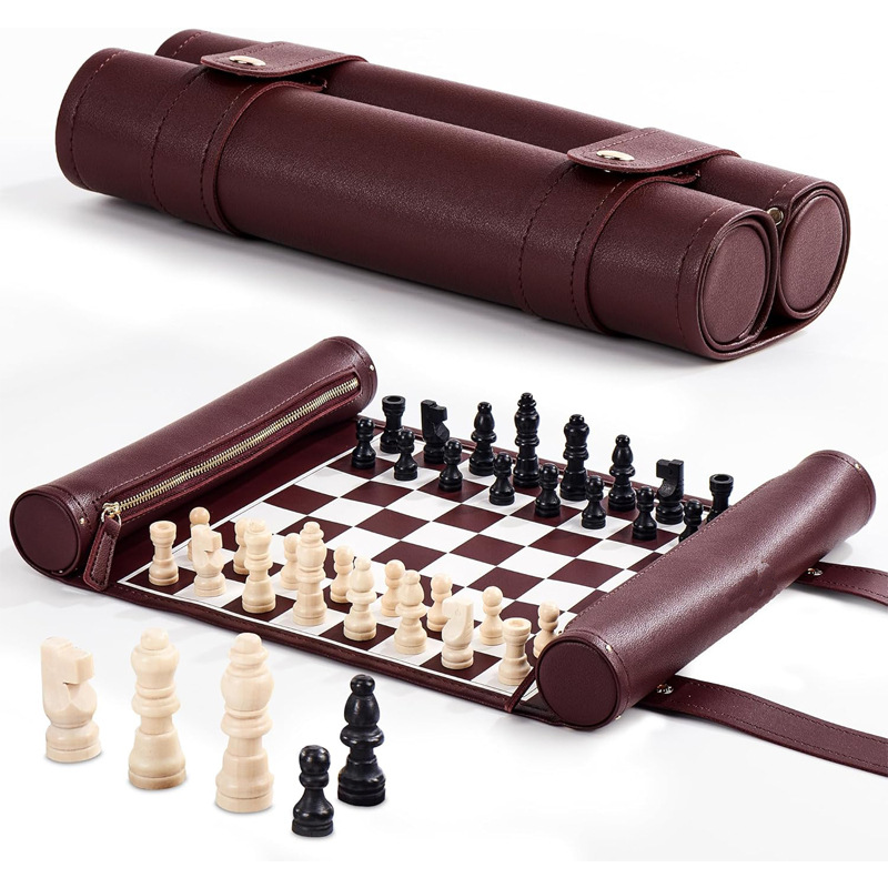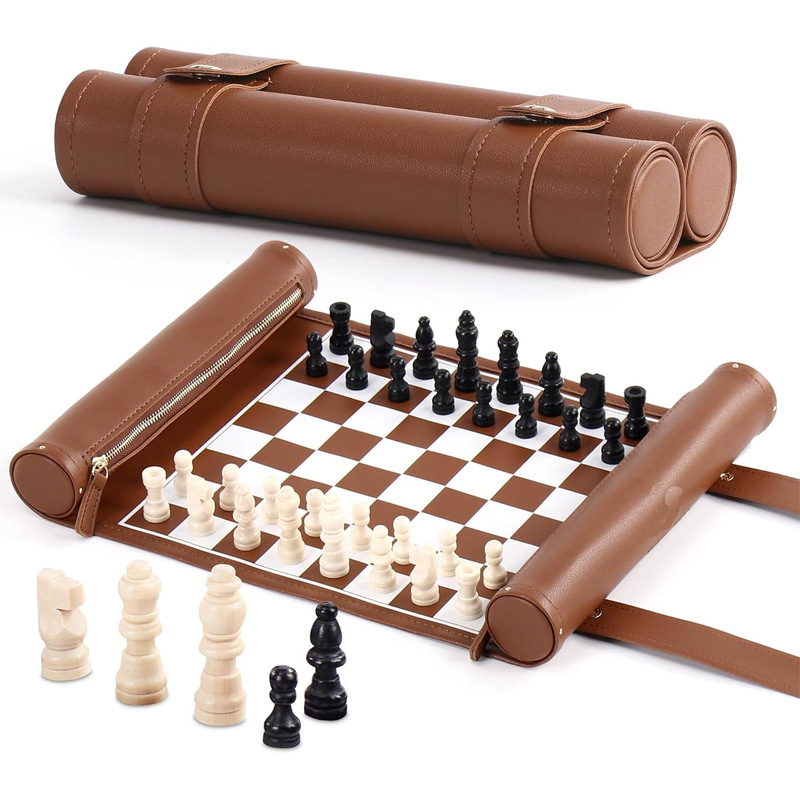 货源厂家现做跨境热销PU卷式国际象棋 双急钮按扣式双陆棋盘套装