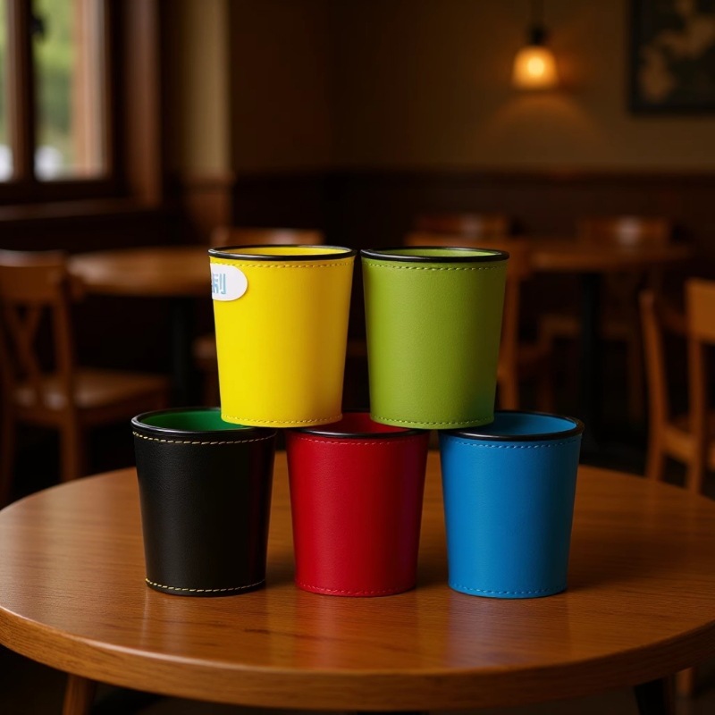 热销骰盅骰子套装PU皮革静音材质色盅色子筛盅筛子可加印logo颜色