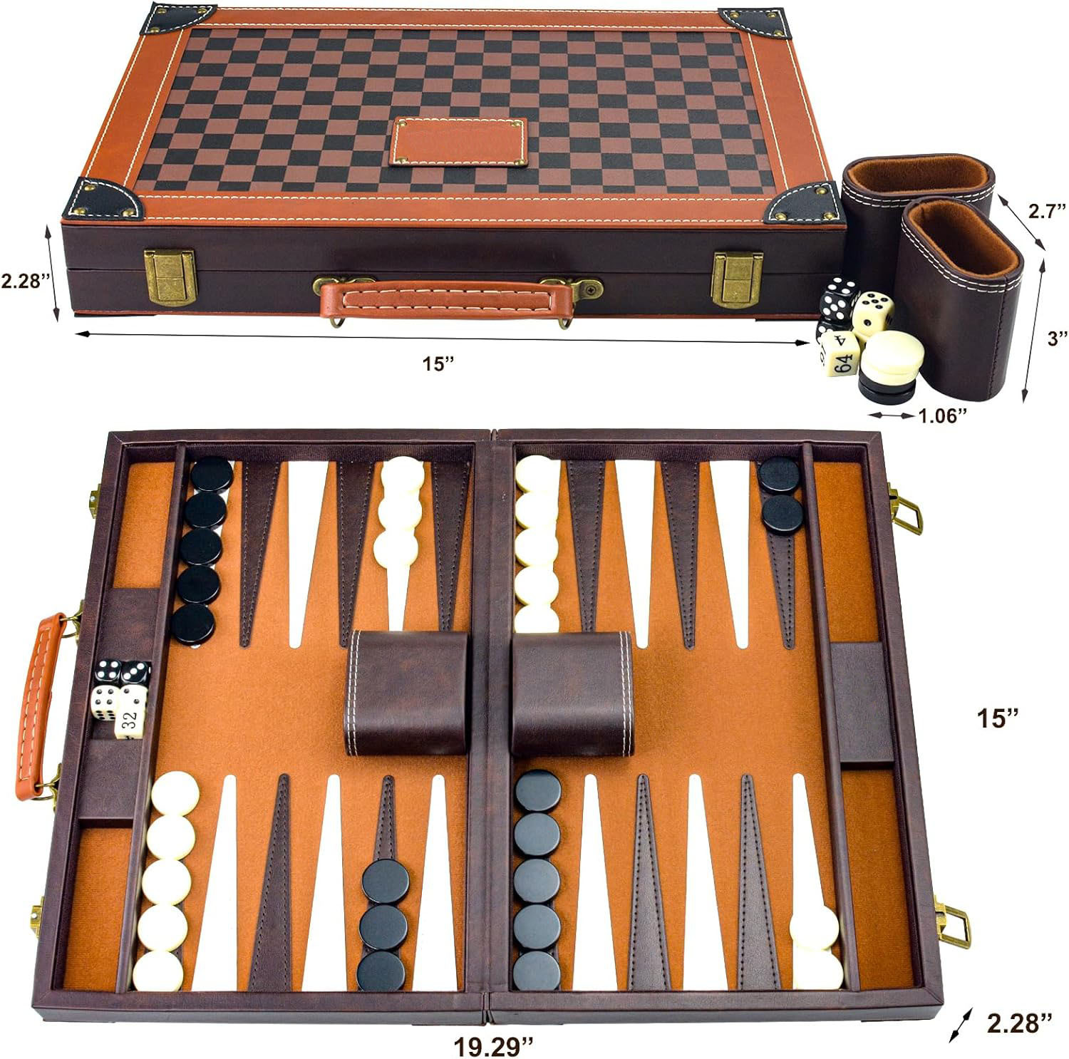 厂家定制亚马逊热销高级双陆棋盒皮质西洋棋游戏棋套装休闲娱乐棋