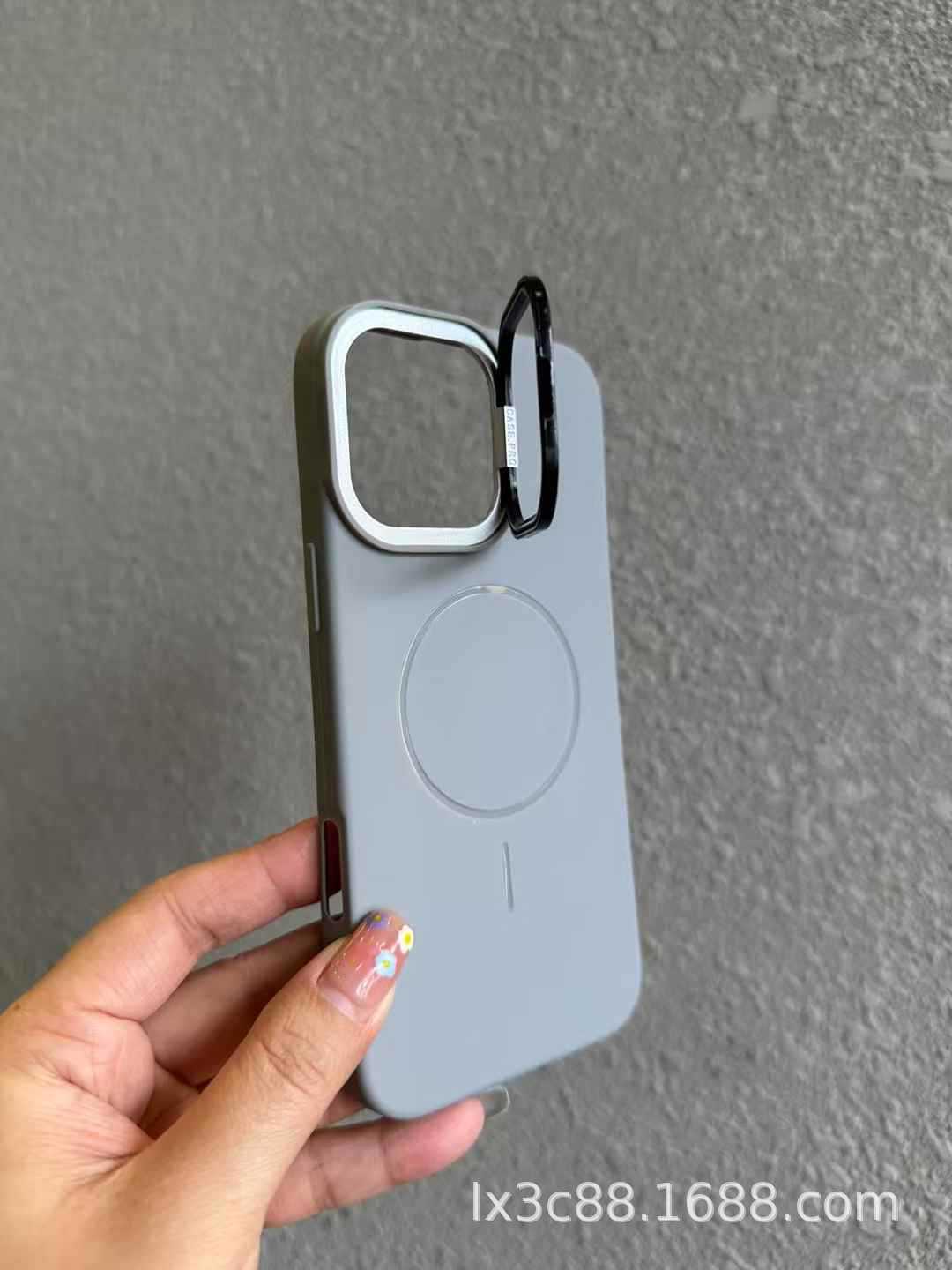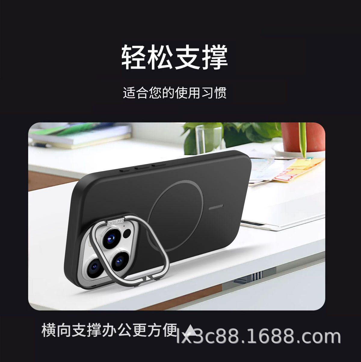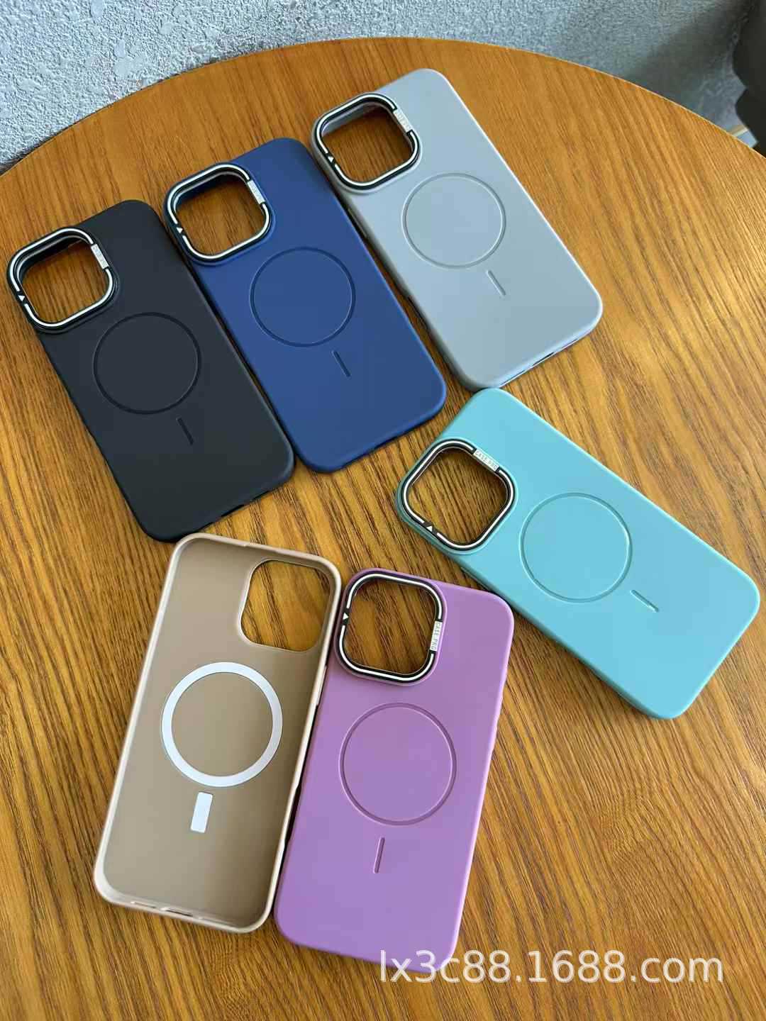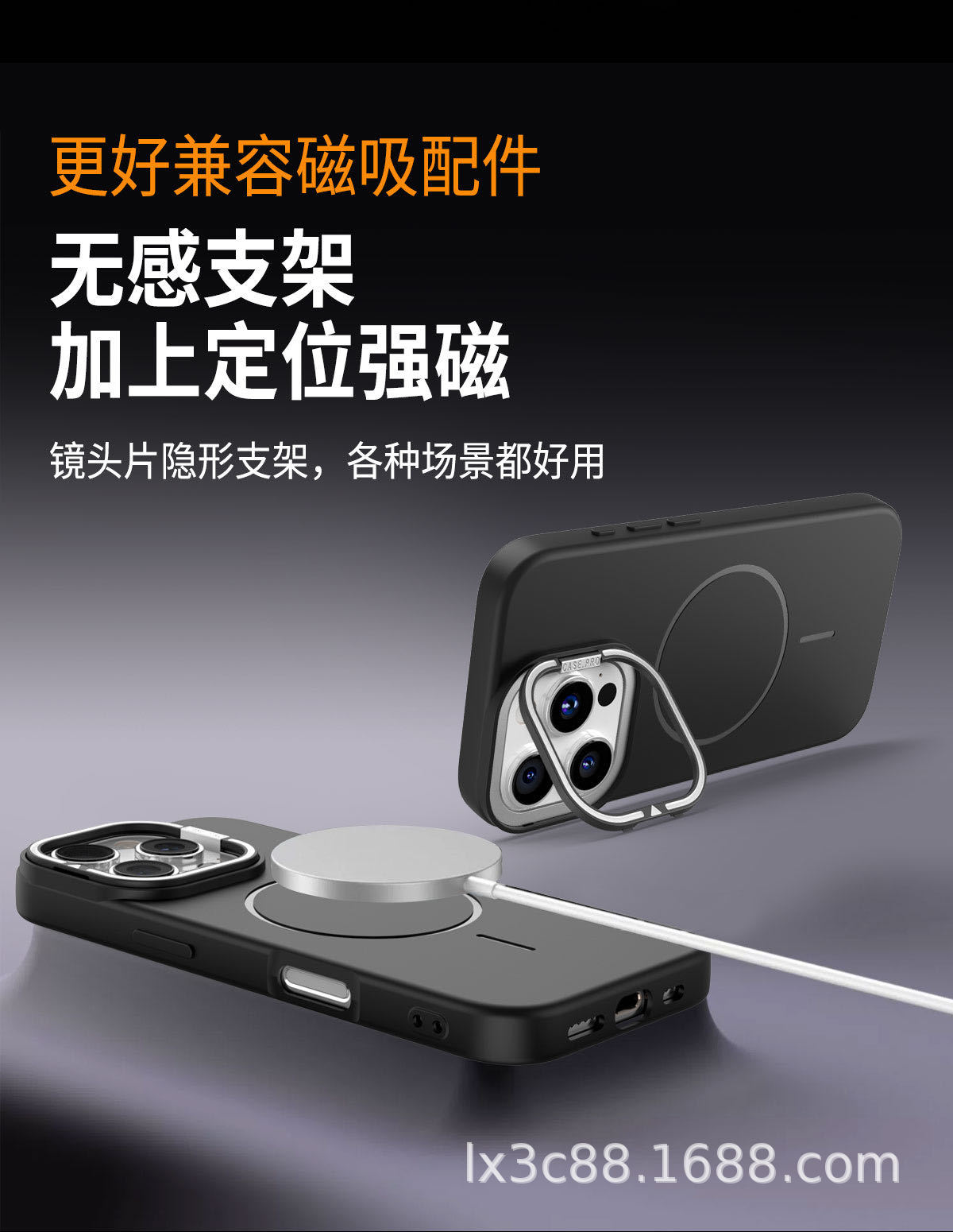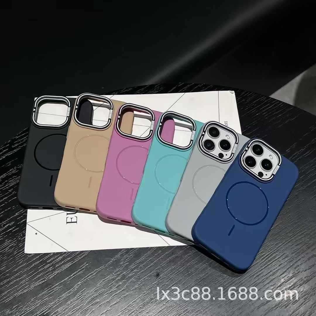 NEW 2025新款 镜头支架细环磁吸壳,全TPU软材质,摄像头加高保护,隐藏式镜框支架,轻松易拉开触点自锁,细环磁吸设计吸力稳固充电稳定,细节方面边框没有合模线,四周一体全包正面齐平屏幕不漏边,纯色磨砂肌肤手感,细腻防滑防摔,支持Magsafe磁吸充电、6种颜色选择,单型号单色20PCS起订,下单请按10倍数下单,订单500PCS起订,默认袋装,如需要搭配纸质包装盒请联系客服.