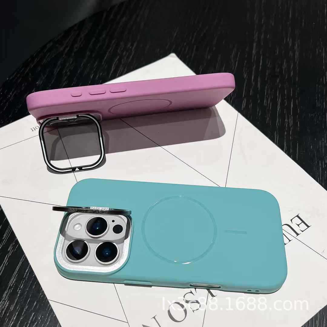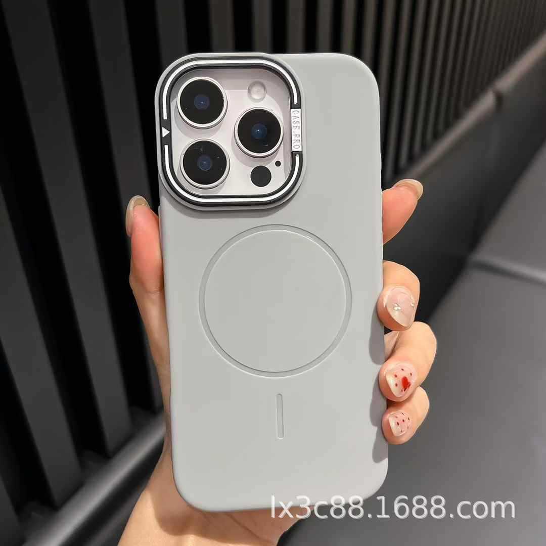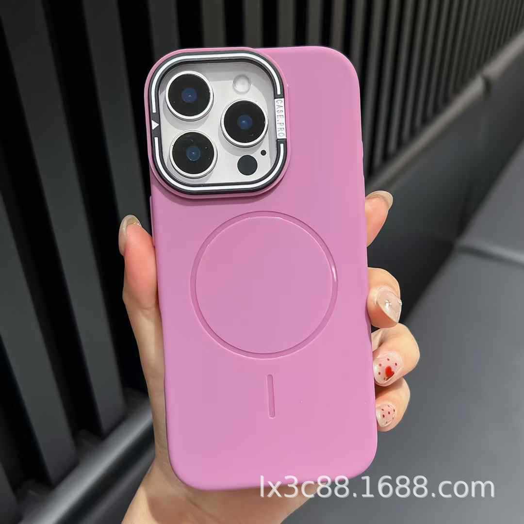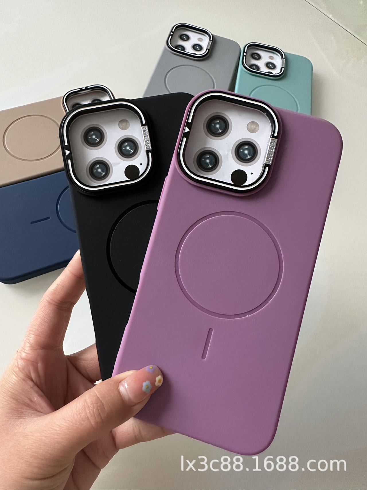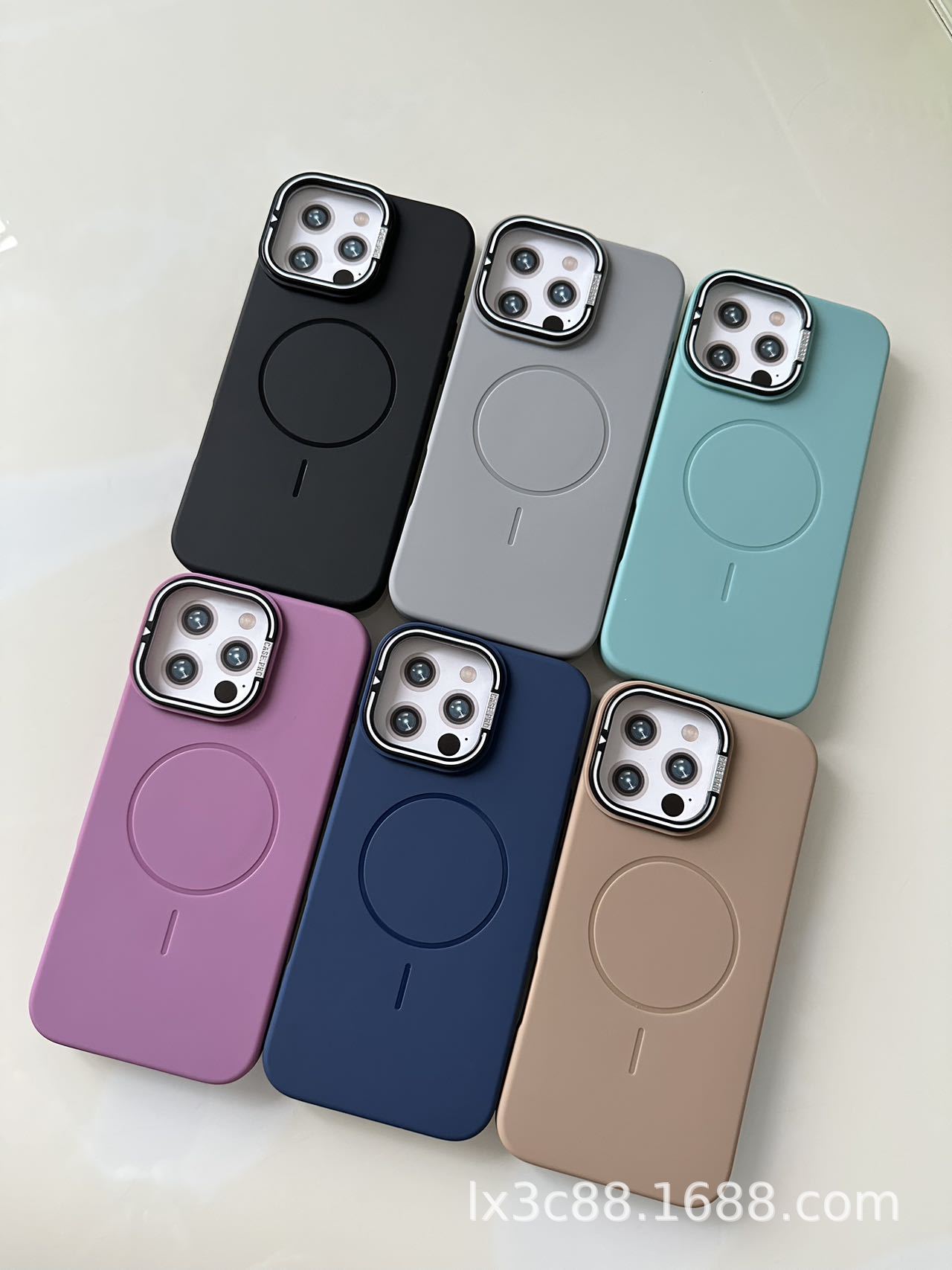 NEW 2025新款 镜头支架细环磁吸壳,全TPU软材质,摄像头加高保护,隐藏式镜框支架,轻松易拉开触点自锁,细环磁吸设计吸力稳固充电稳定,细节方面边框没有合模线,四周一体全包正面齐平屏幕不漏边,纯色磨砂肌肤手感,细腻防滑防摔,支持Magsafe磁吸充电、6种颜色选择,单型号单色20PCS起订,下单请按10倍数下单,订单500PCS起订,默认袋装,如需要搭配纸质包装盒请联系客服.