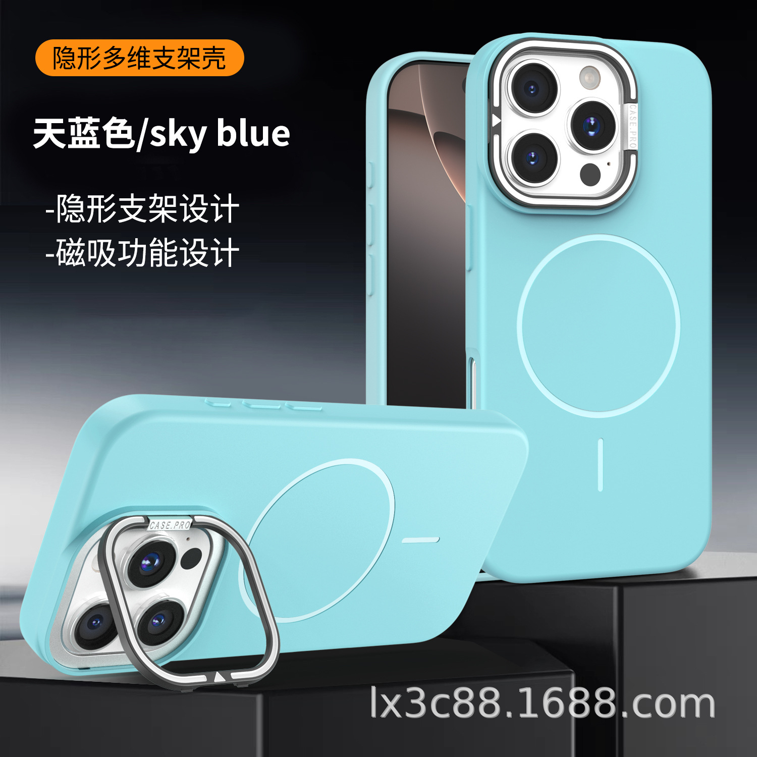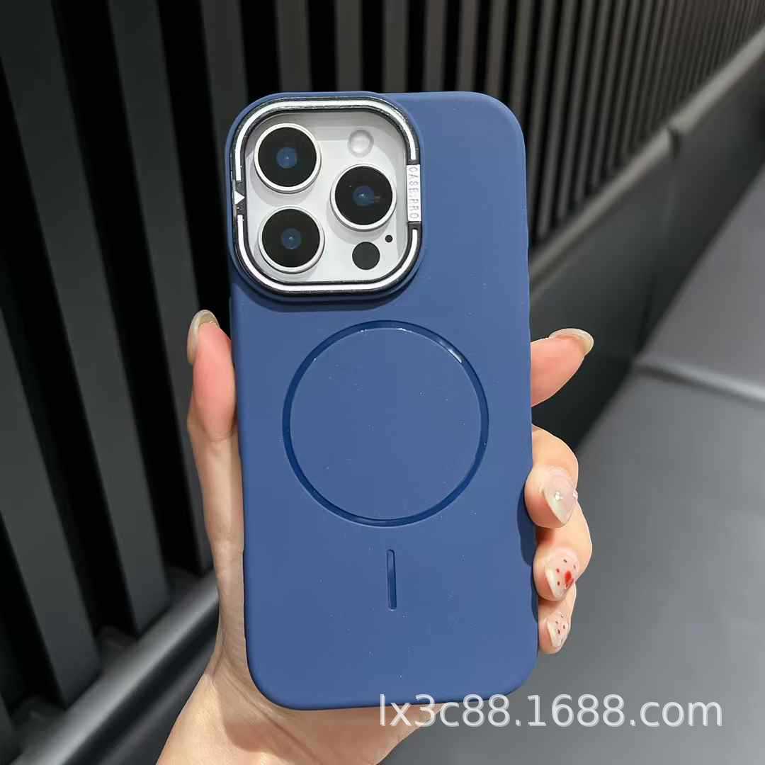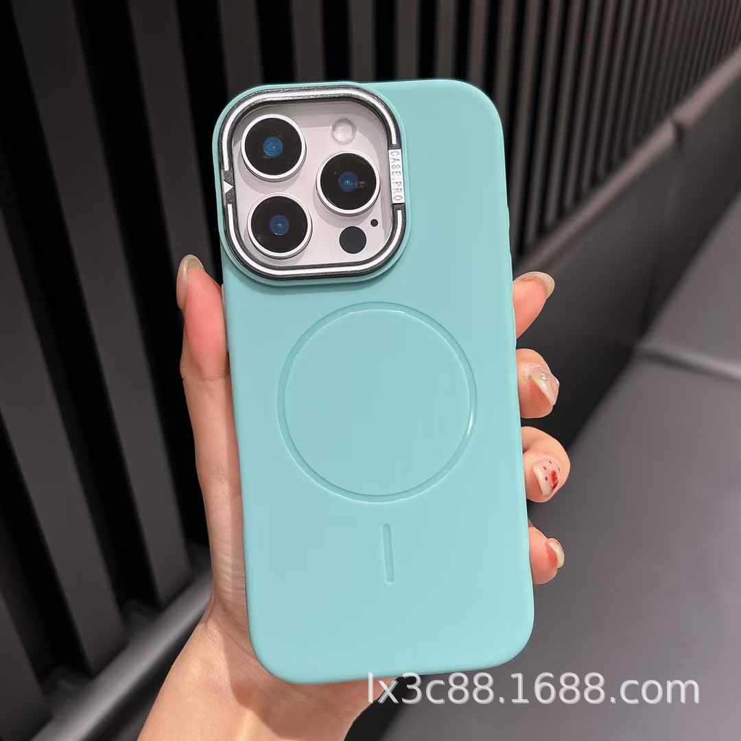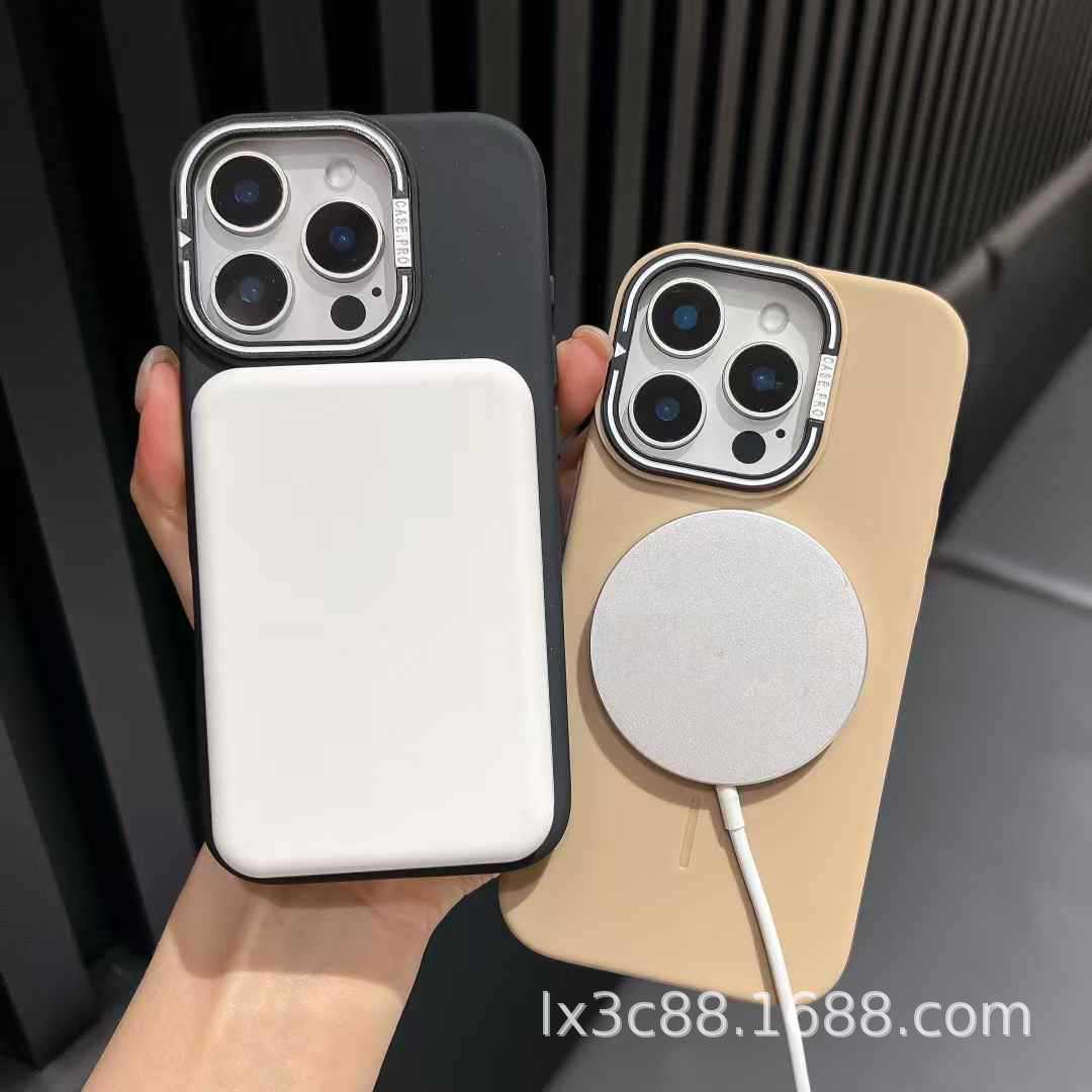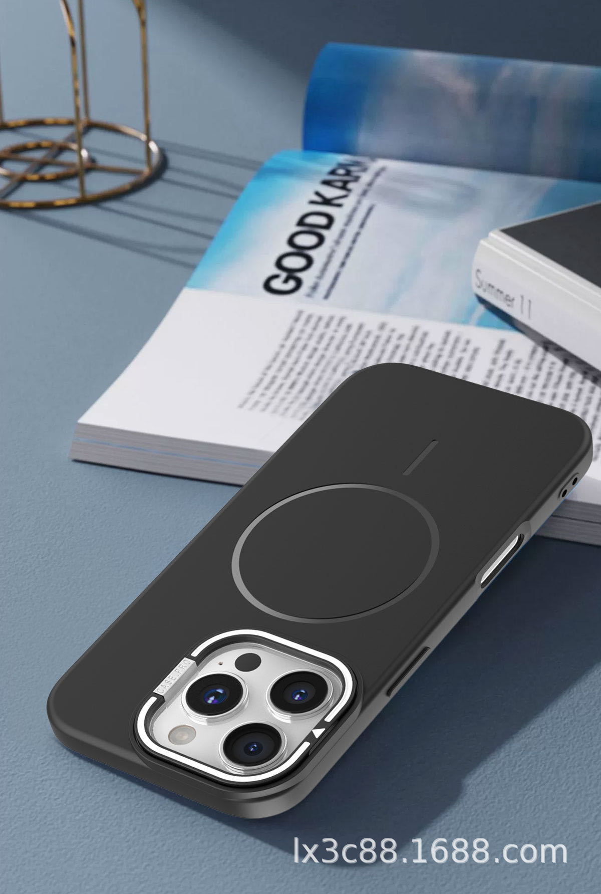 NEW 2025新款 镜头支架细环磁吸壳,全TPU软材质,摄像头加高保护,隐藏式镜框支架,轻松易拉开触点自锁,细环磁吸设计吸力稳固充电稳定,细节方面边框没有合模线,四周一体全包正面齐平屏幕不漏边,纯色磨砂肌肤手感,细腻防滑防摔,支持Magsafe磁吸充电、6种颜色选择,单型号单色20PCS起订,下单请按10倍数下单,订单500PCS起订,默认袋装,如需要搭配纸质包装盒请联系客服.