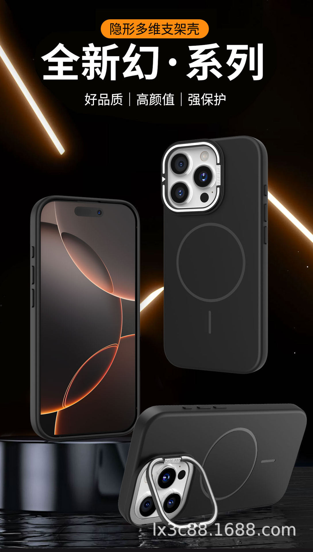 适用苹果iPhone17/16/15/14/13/12ProMax镜头支架细环磁吸手机壳