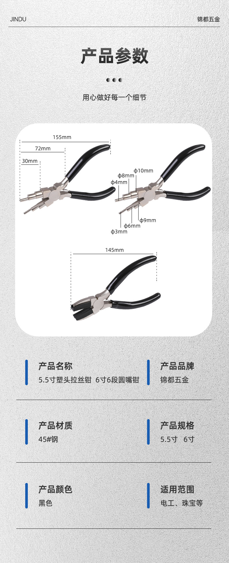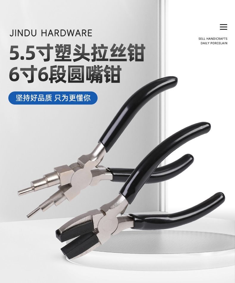 源头厂家5.5寸镀镍塑头拉丝钳6寸镀镍6段圆嘴钳金银铜绕线钳塑料