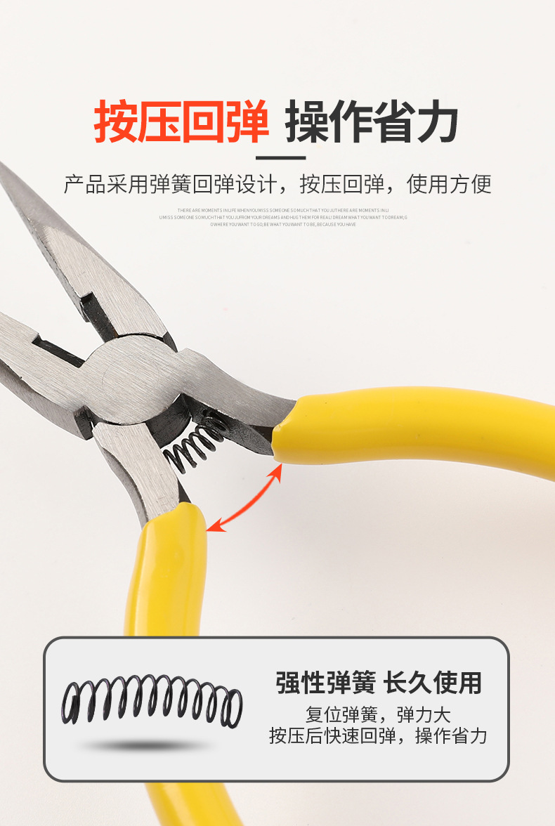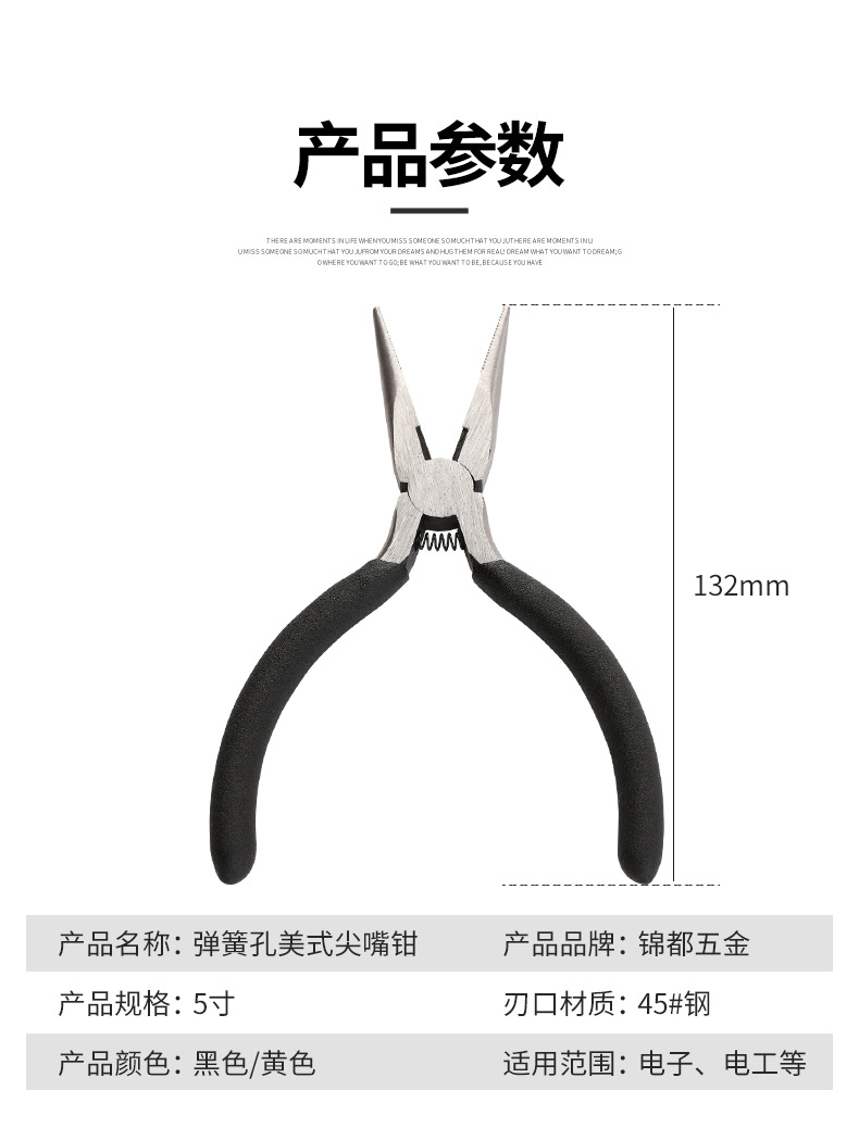 供应黄光面5寸美式弹簧孔尖嘴钳 斜嘴钳 高品质
