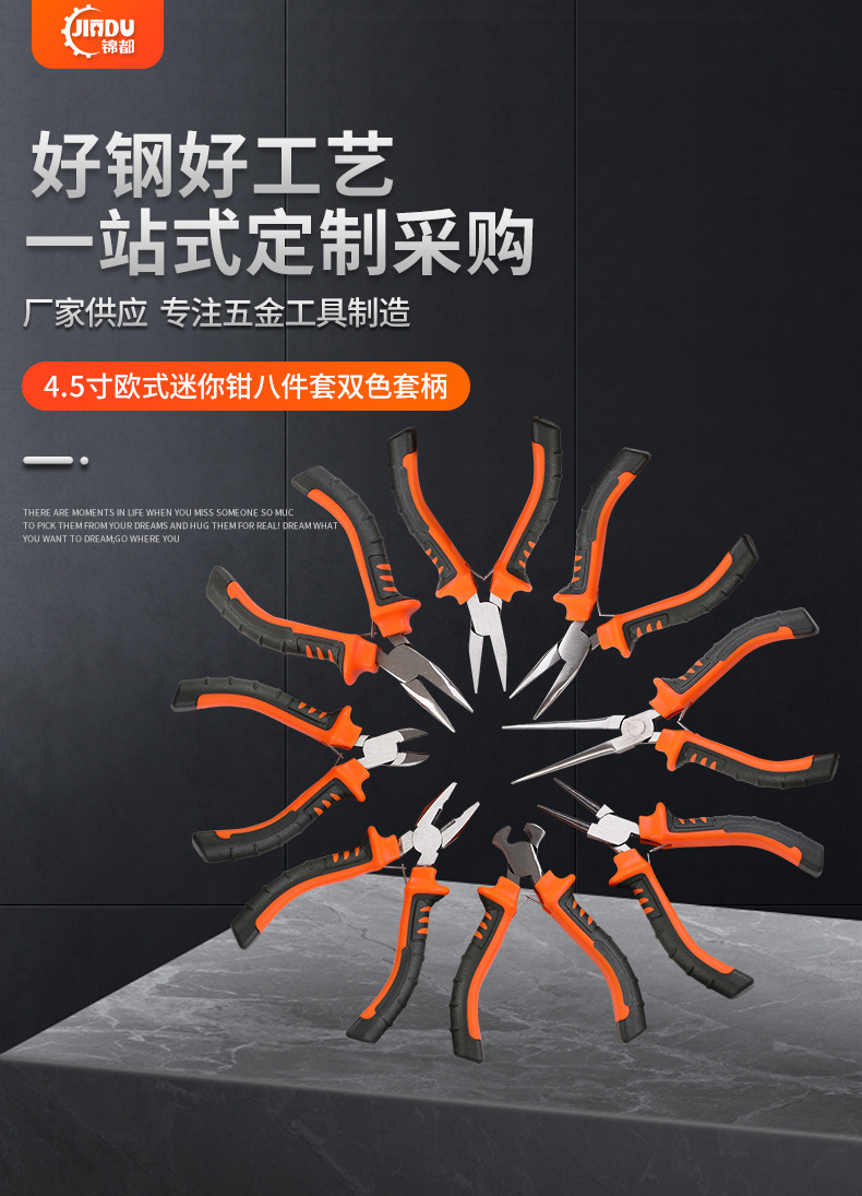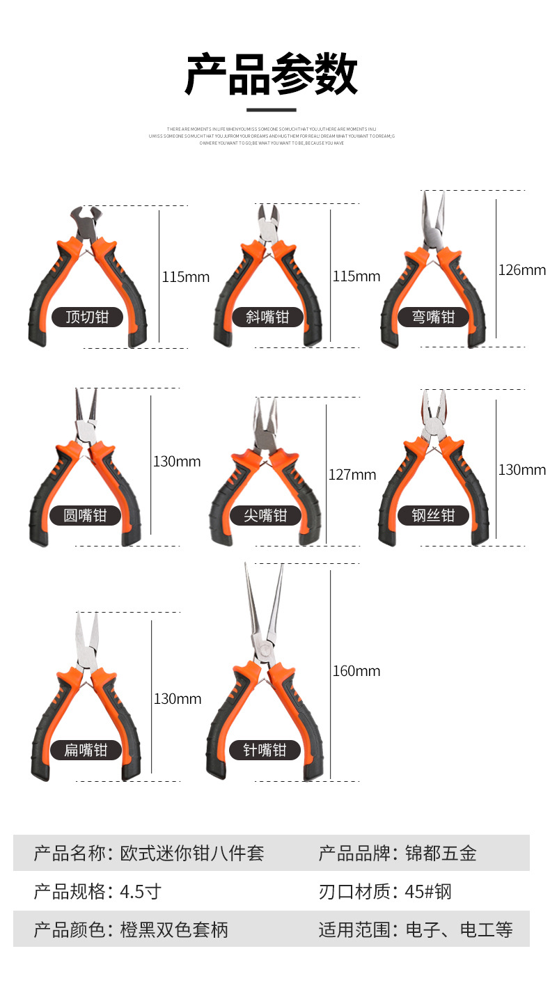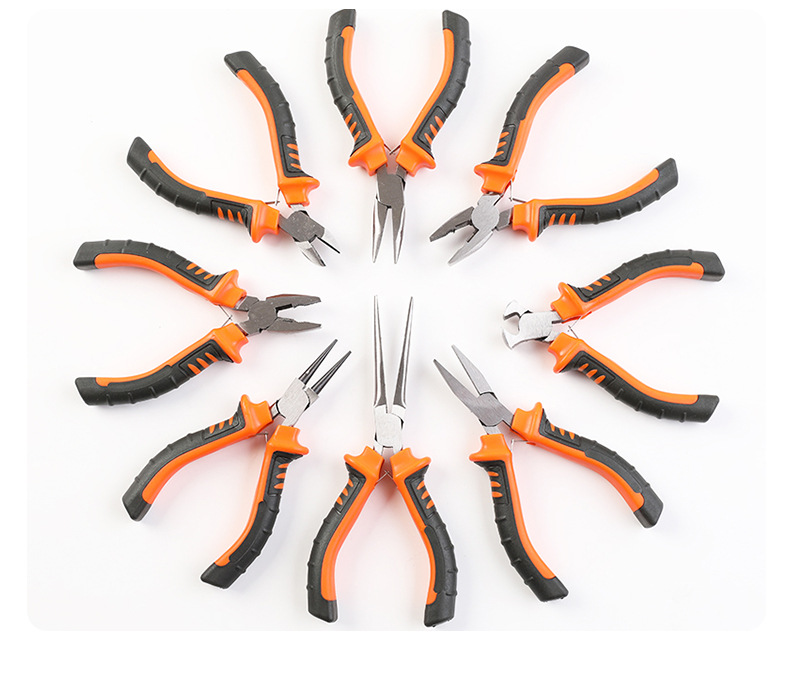 4.5寸欧式迷你钳八件套双色套柄尖嘴钳接发钳斜口钳珠宝绕线钳