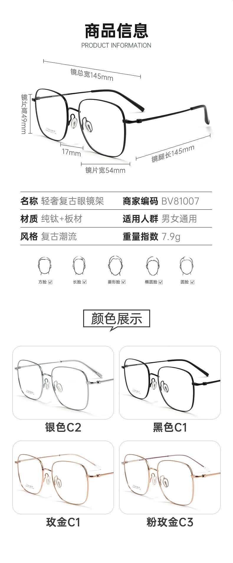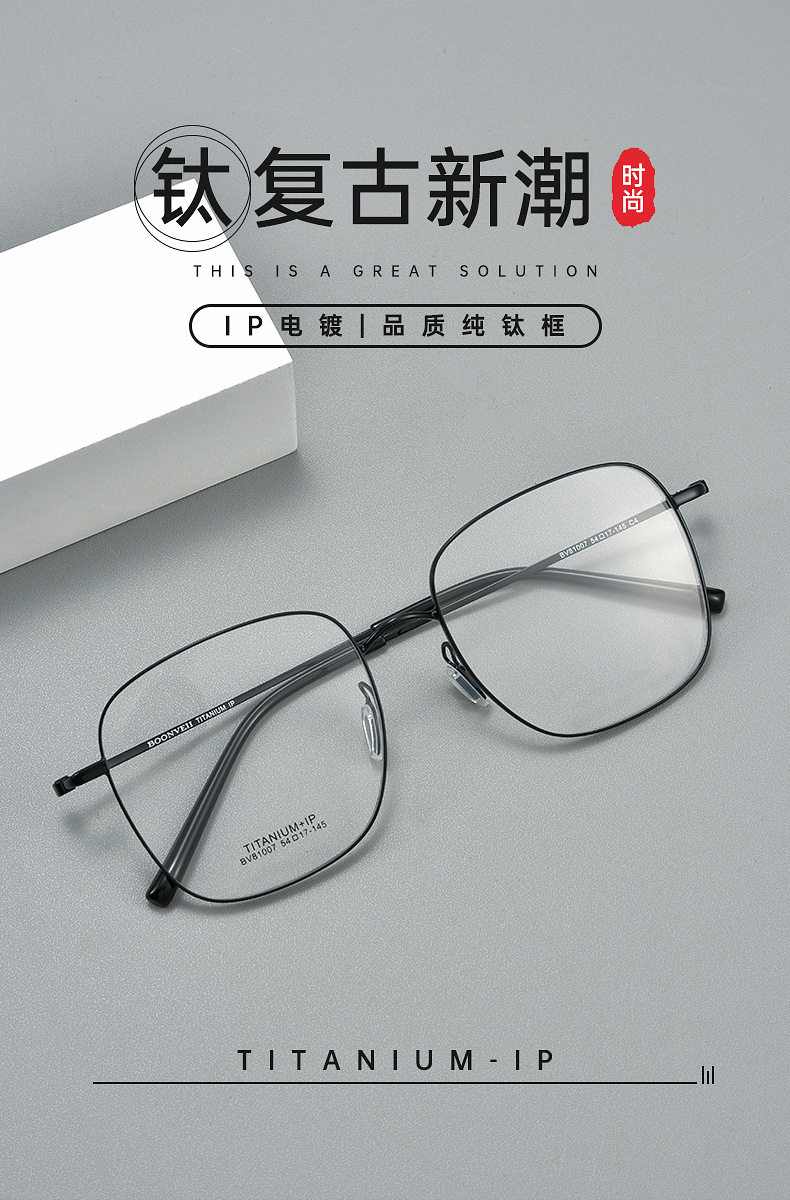 新款潮流轻奢大框方框纯钛镜框复古文艺高品质眼镜框丹阳眼镜批发