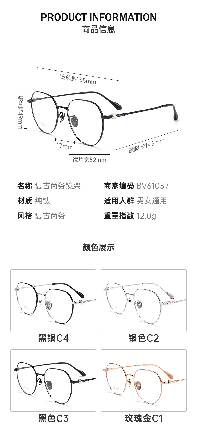 - 镜架材质:钛