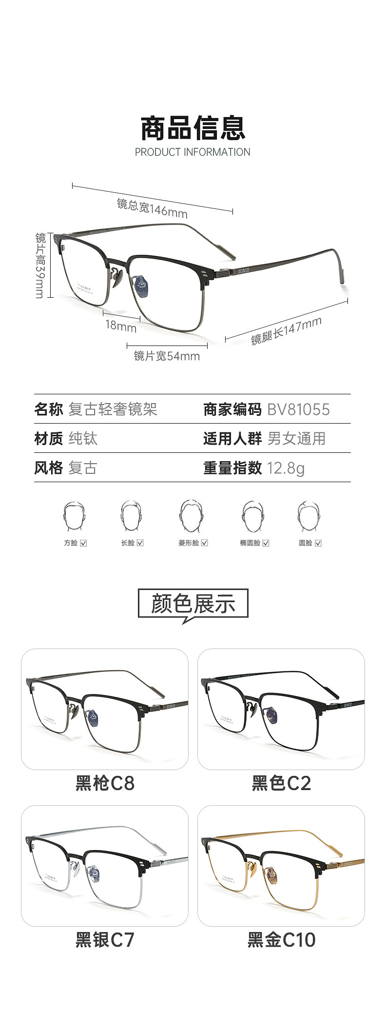 - 镜框材质:纯钛