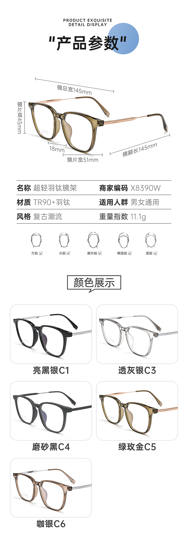 超轻复古素颜TR90眼镜框时尚休闲复古潮流纯钛镜框女丹阳眼镜批发