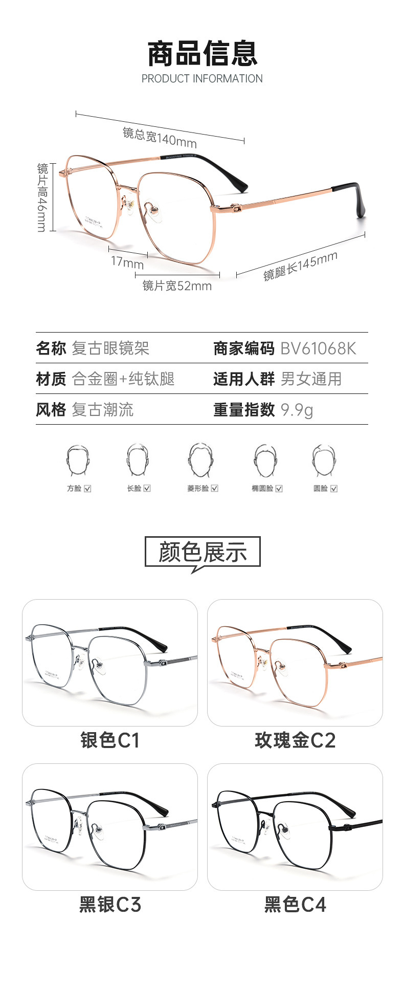 - 镜框材质:合金圈+钛腿