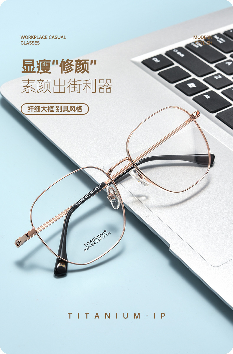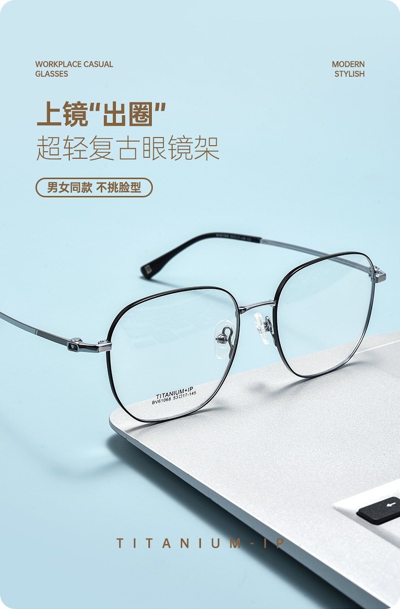 新款素颜时尚大框纯钛镜框复古文艺百搭高级感眼镜框丹阳眼镜批发