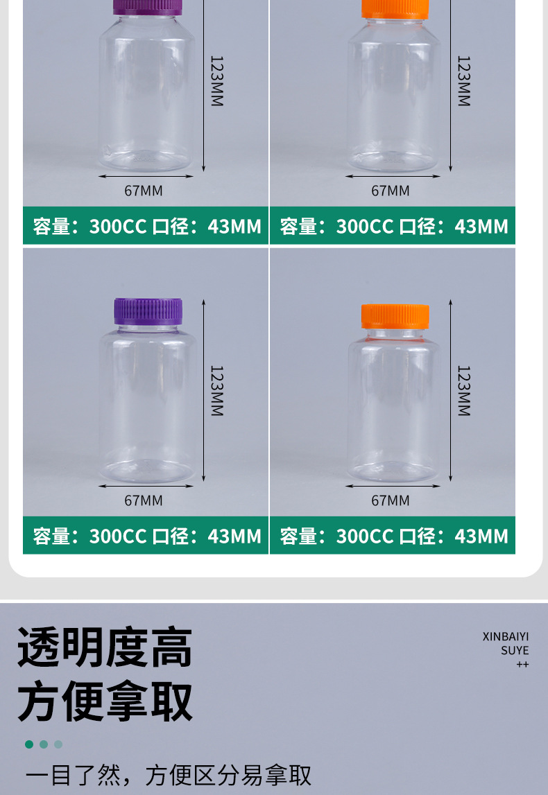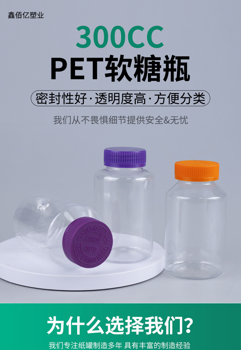 软糖包装瓶300g广口斜肩蓝莓叶黄素维生素包装瓶子300cc胶囊瓶
