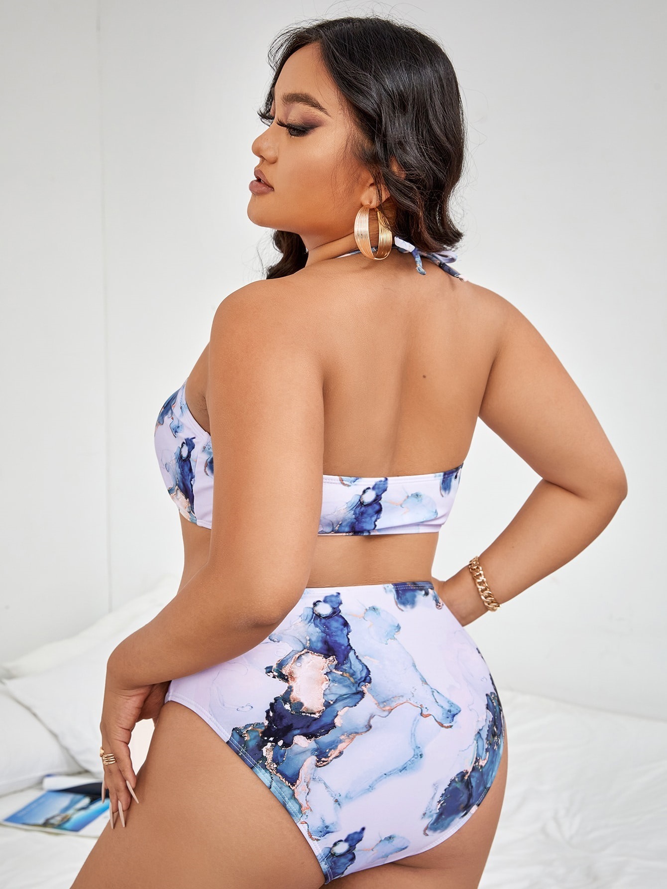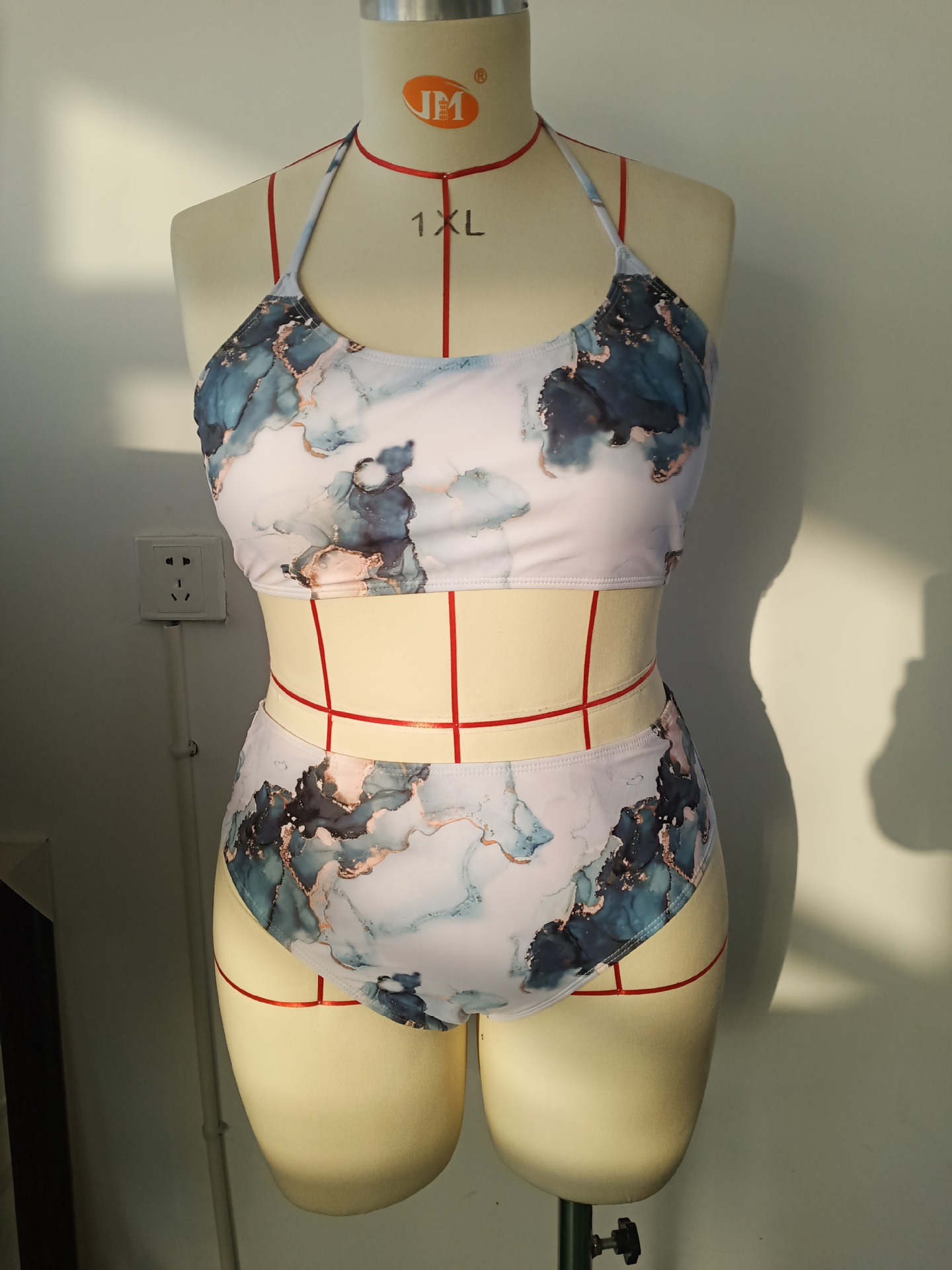 欧美分体大码泳衣性感速卖通亚马逊性感吊带高腰印花大码比基尼女