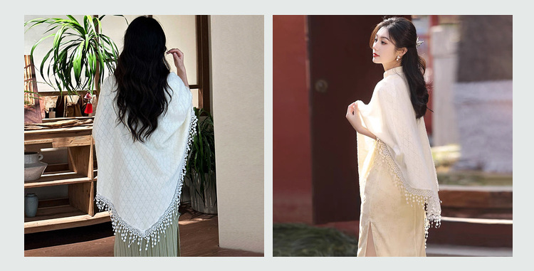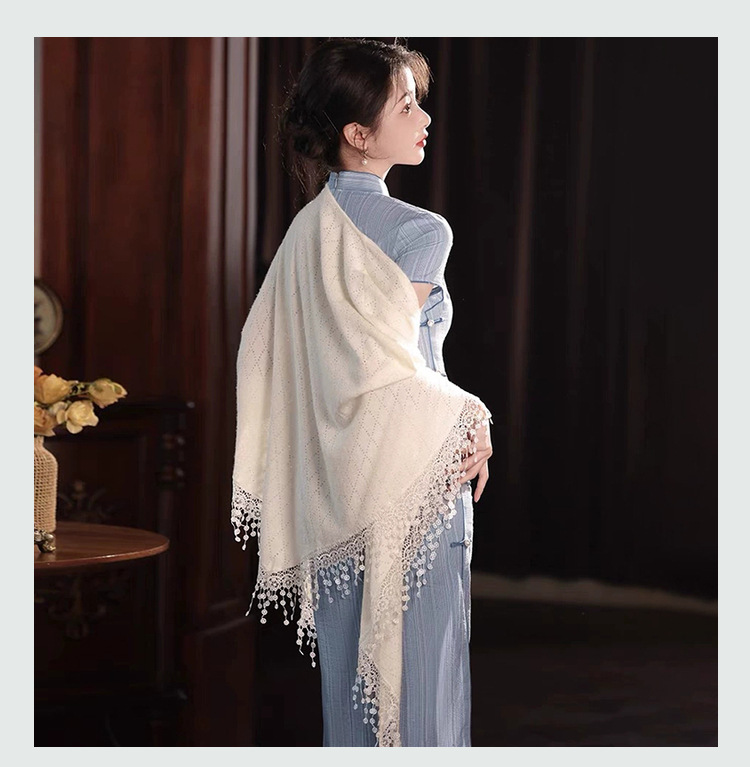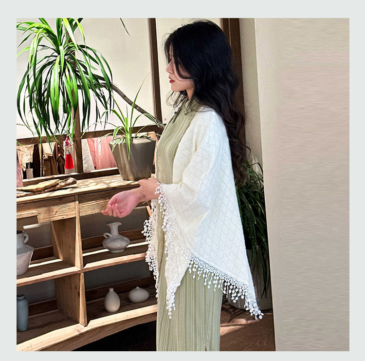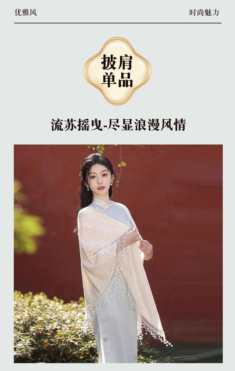 复古文艺镂空新款优雅披肩旗袍百搭开衫气质流苏外套中式针织薄款