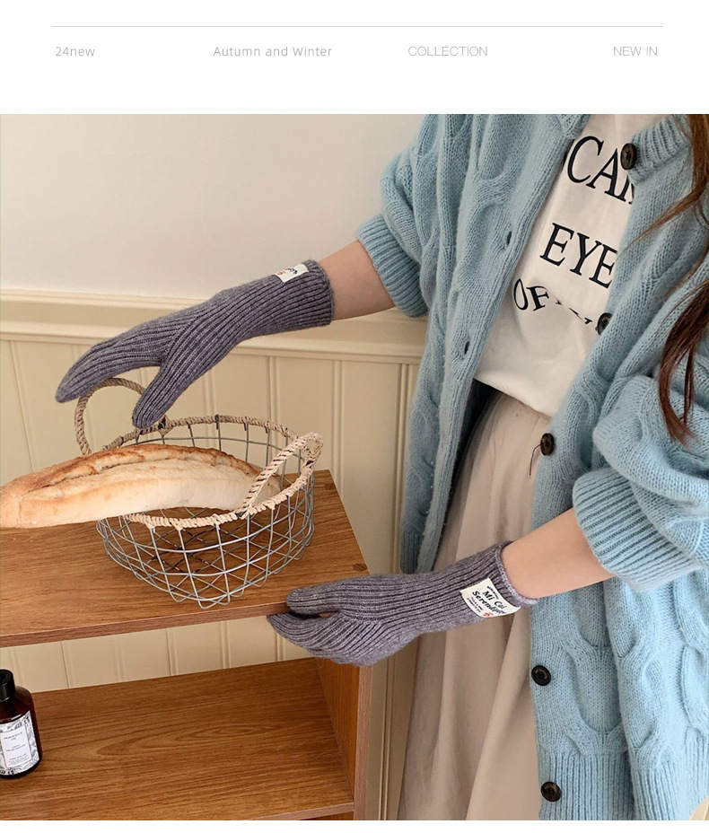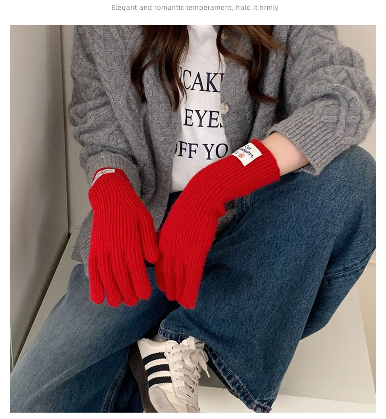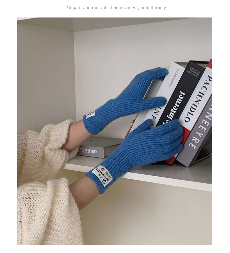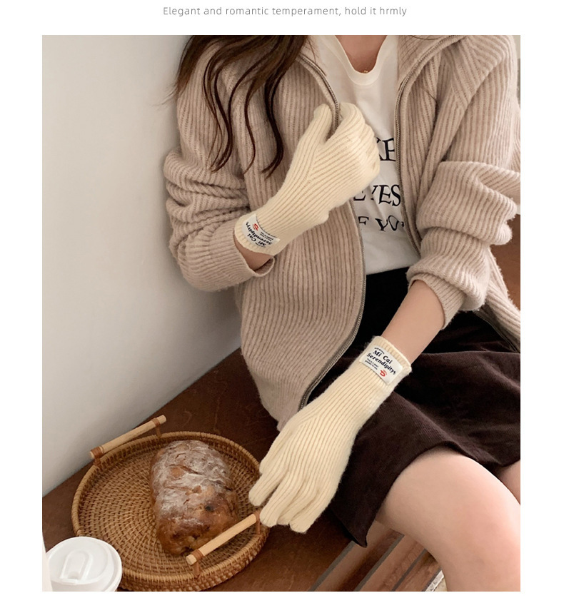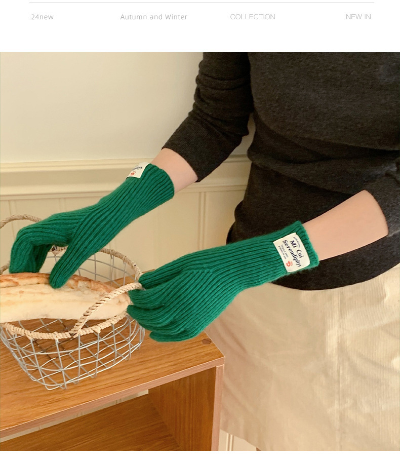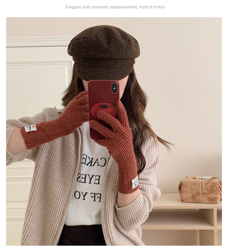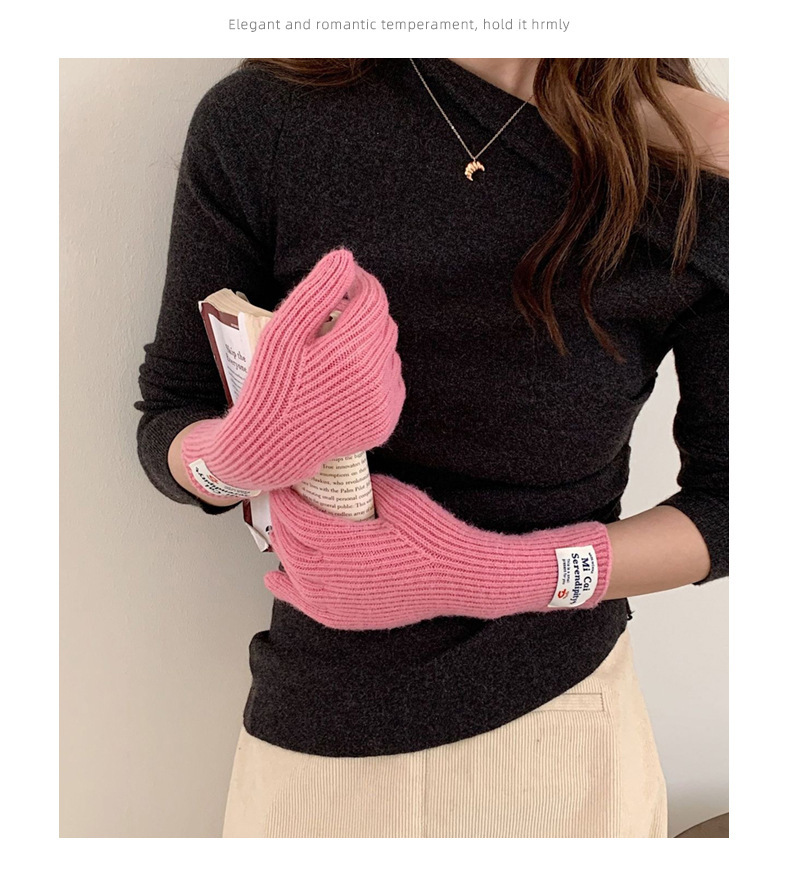 冬季女手套触屏露指纯色保暖针织长款防风五指骑行韩版潮情侣百搭