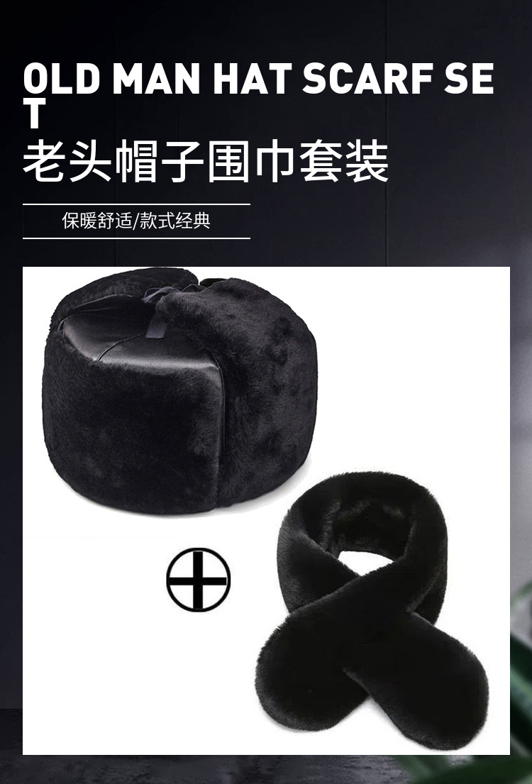 男爸爸秋冬中老年人皮帽爷爷雷锋帽零下保暖防寒老头帽毛绒厚围巾