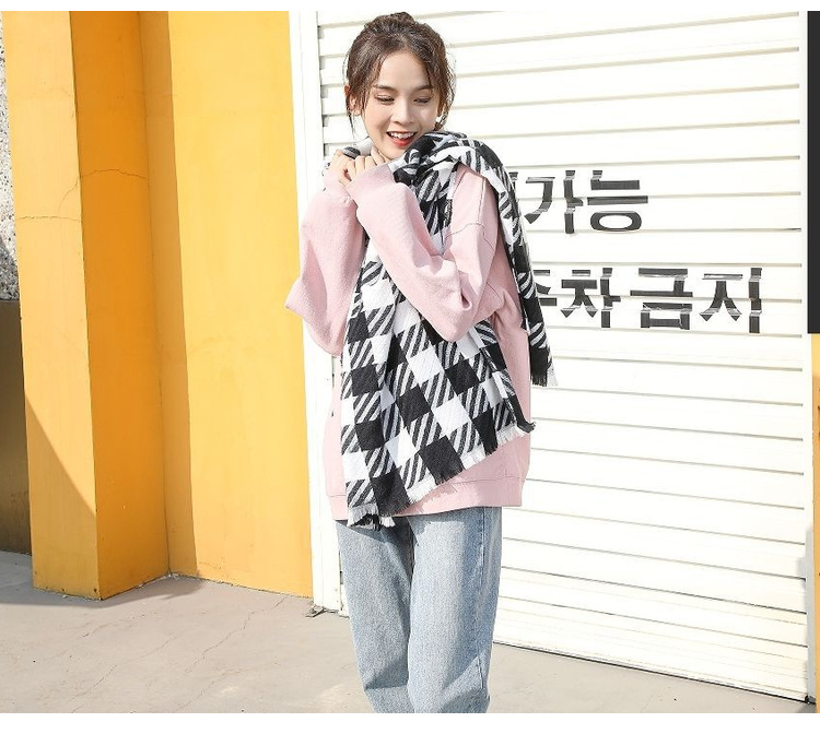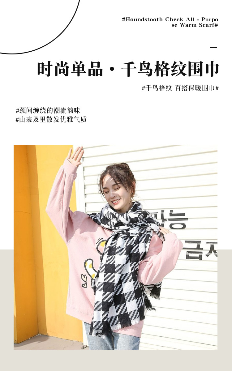 秋冬季千鸟格围巾保暖ins加厚学生围脖情侣百搭格子披肩设计流苏