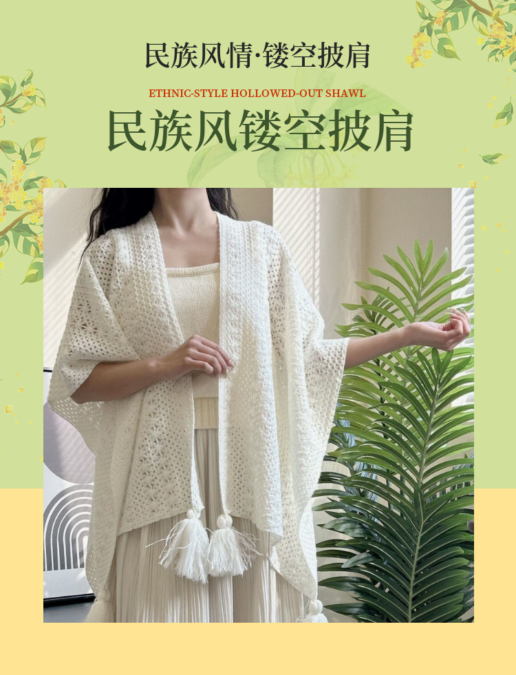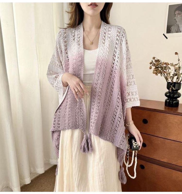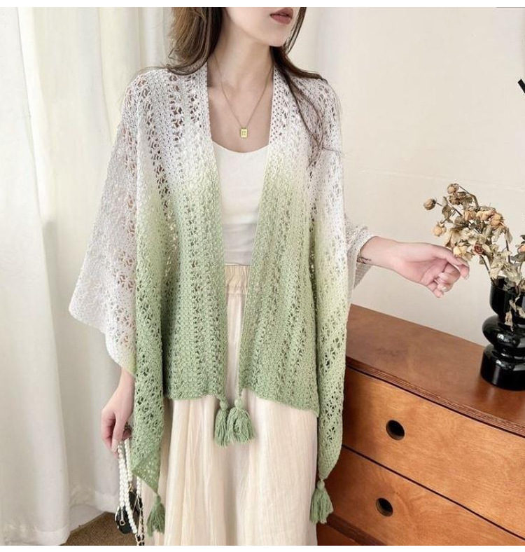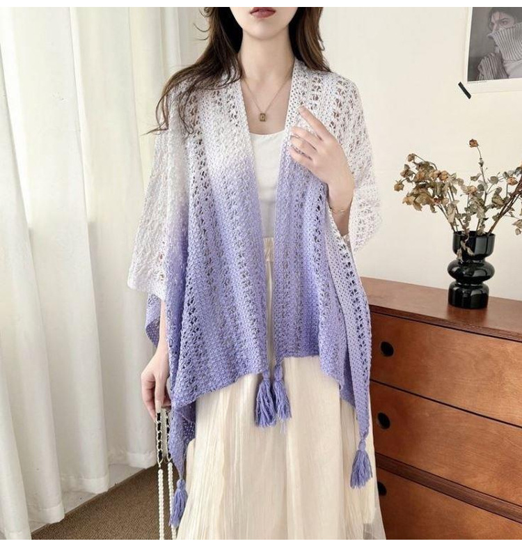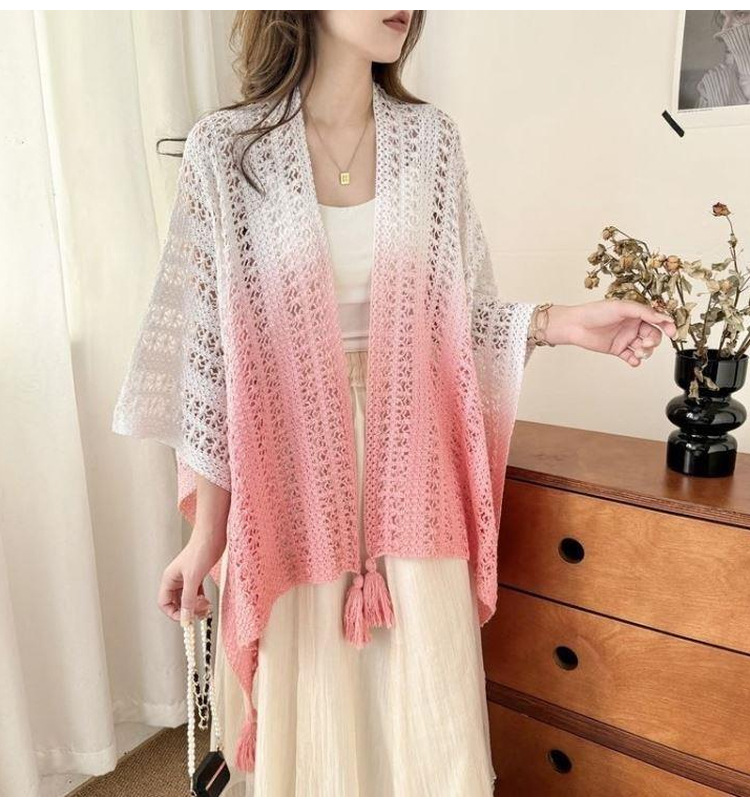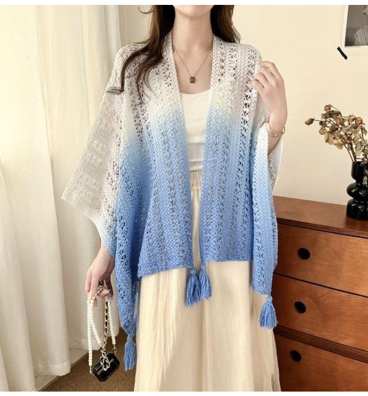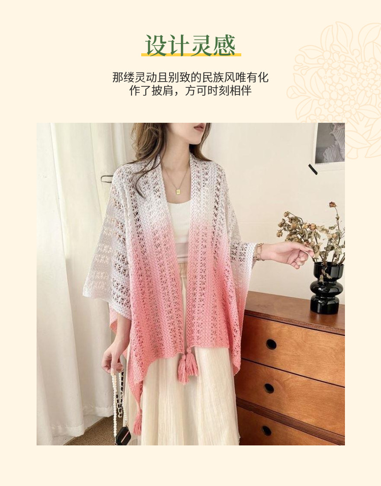 春夏扎染渐变色民族风披肩手工流苏针织镂空外搭旅游度假透气围巾
