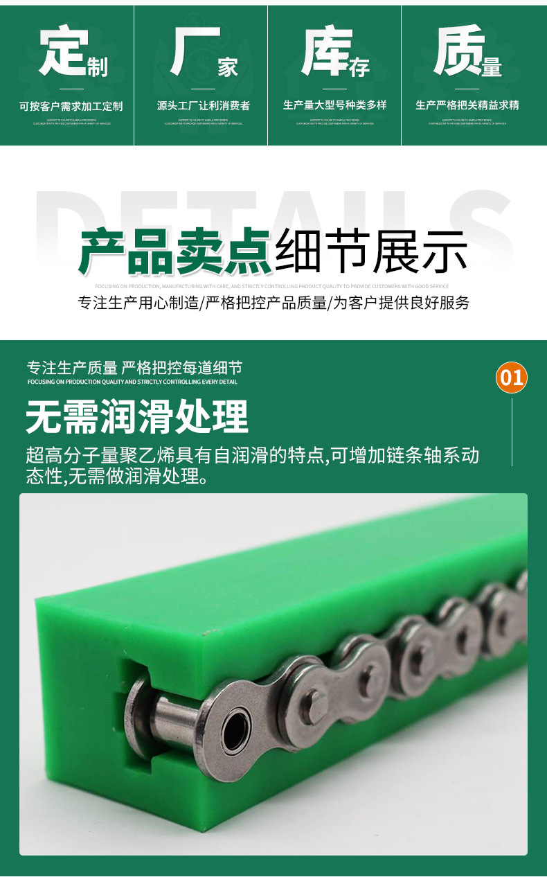 高分子聚乙烯链条导轨减震降噪自润滑尼龙双排输送机耐磨导向条