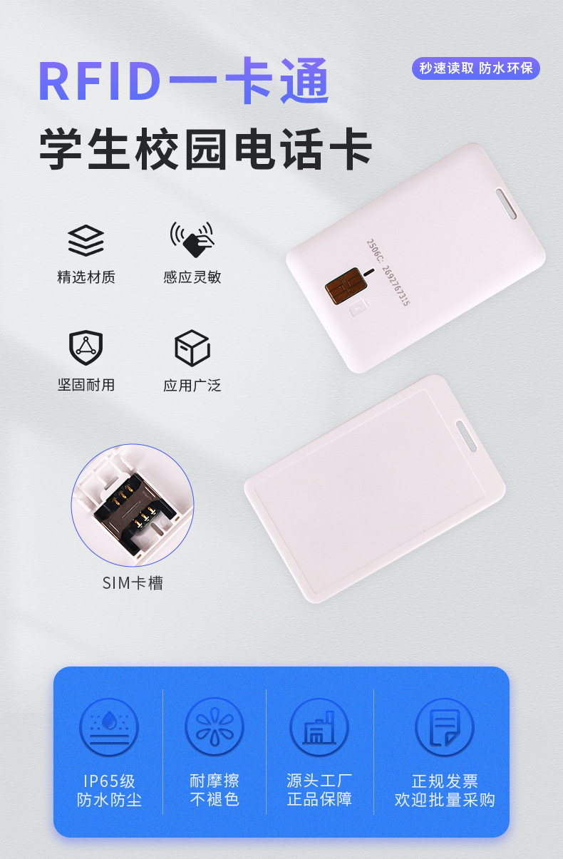 学生一卡通插手机卡 支持RFID13.56M1 SIM卡二合一激光LOGO现货