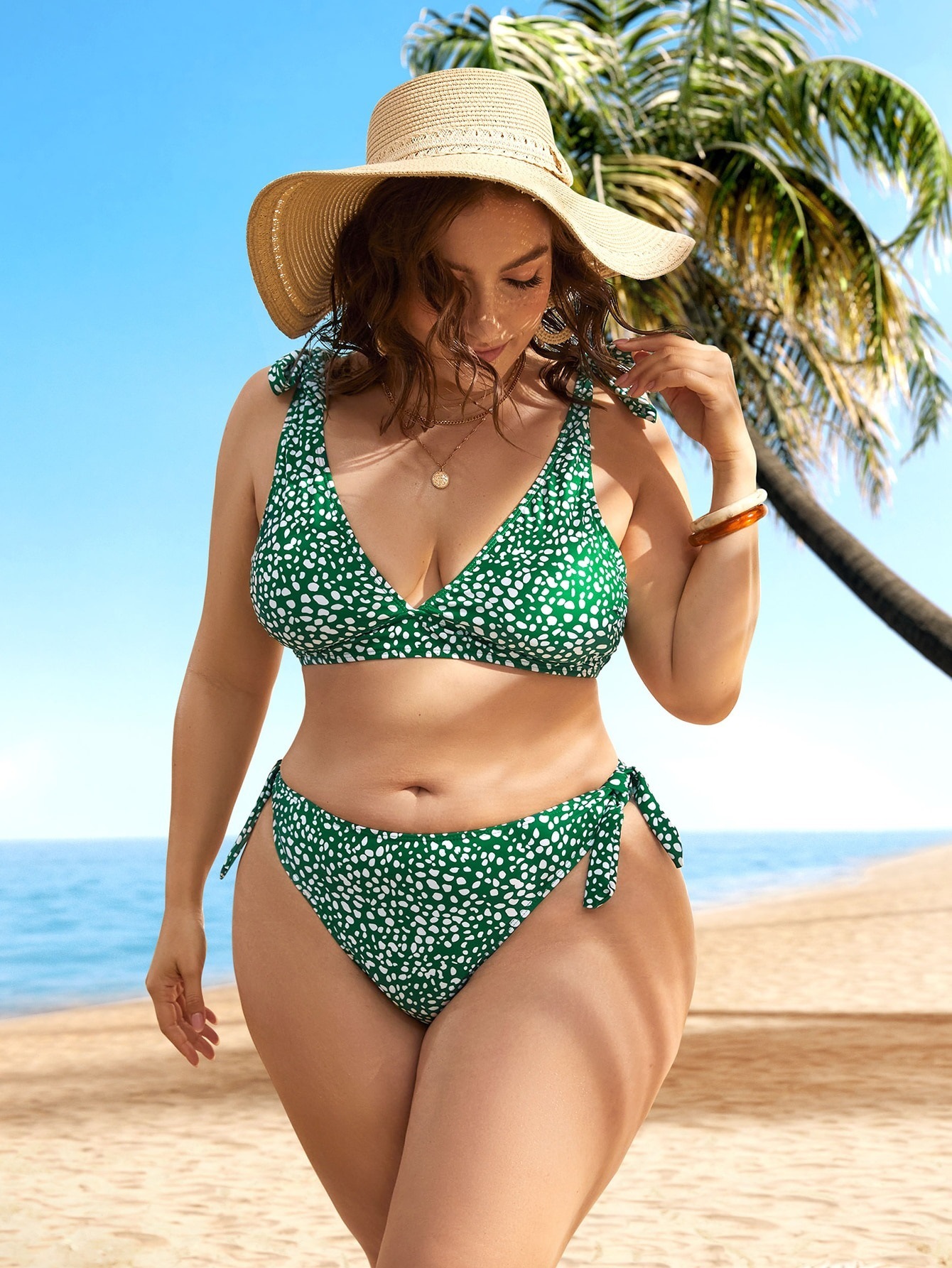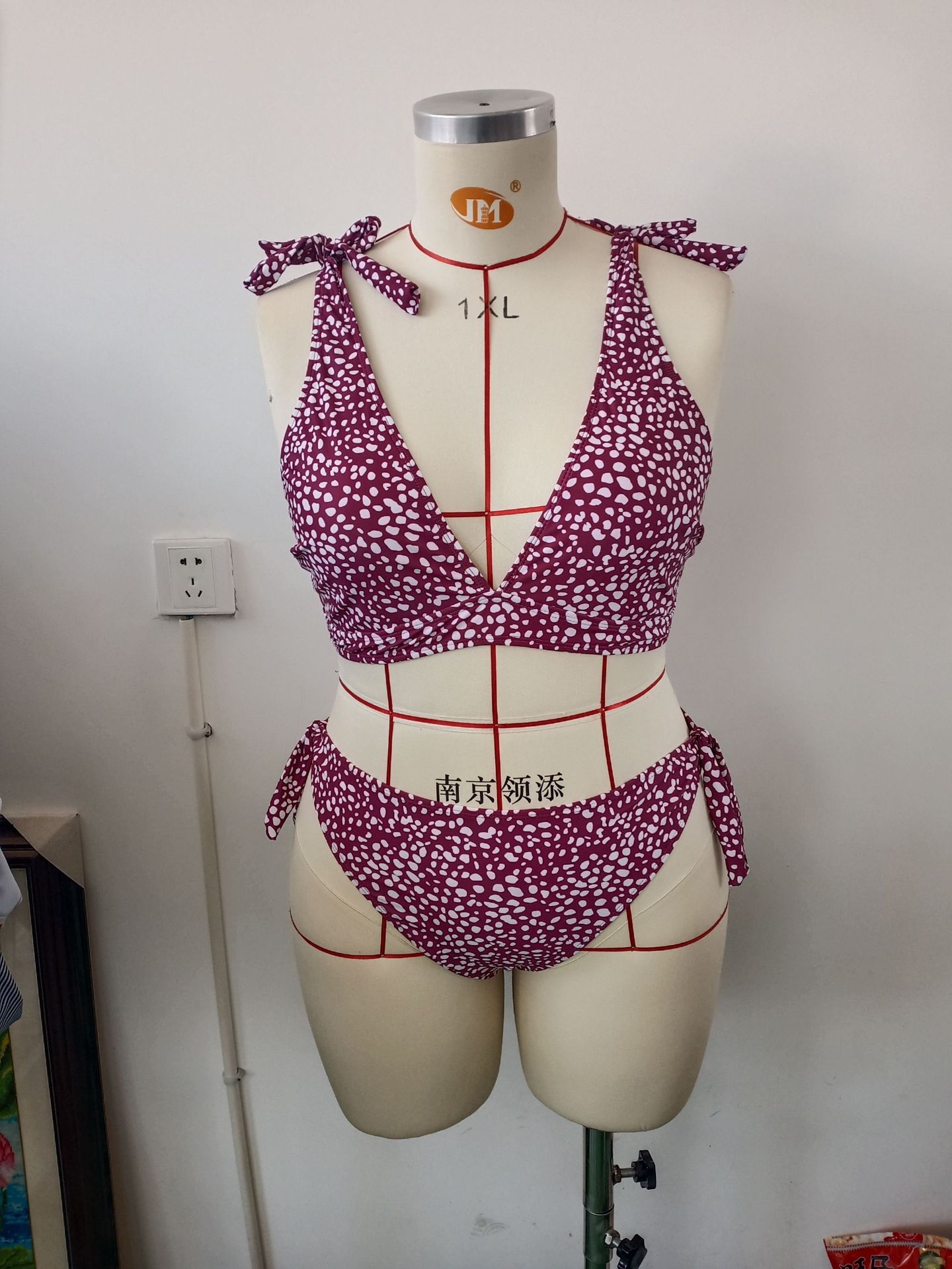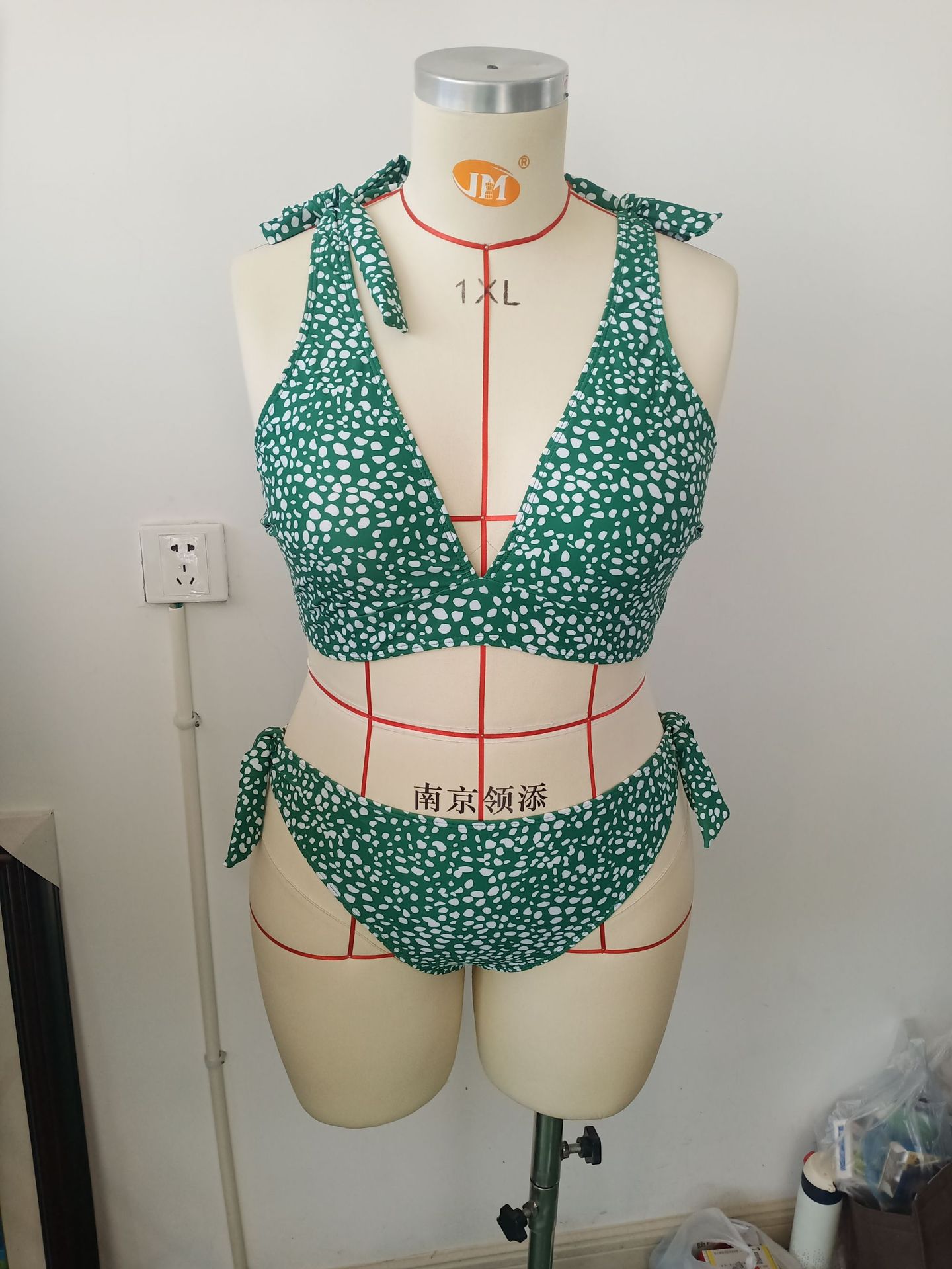 跨境外贸大码波点分体比基尼女吊带性感深V泳衣沙滩两件套泳衣女