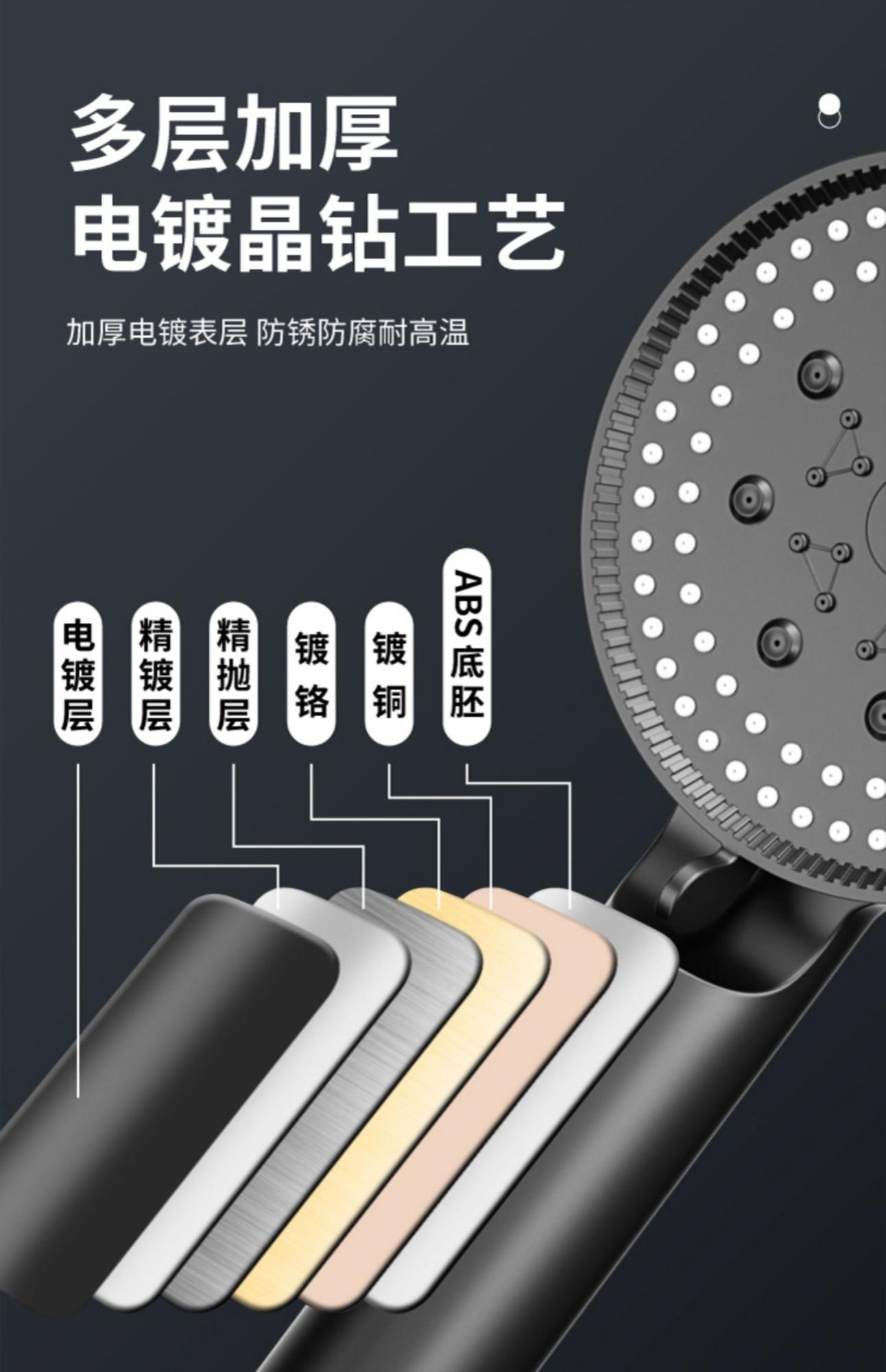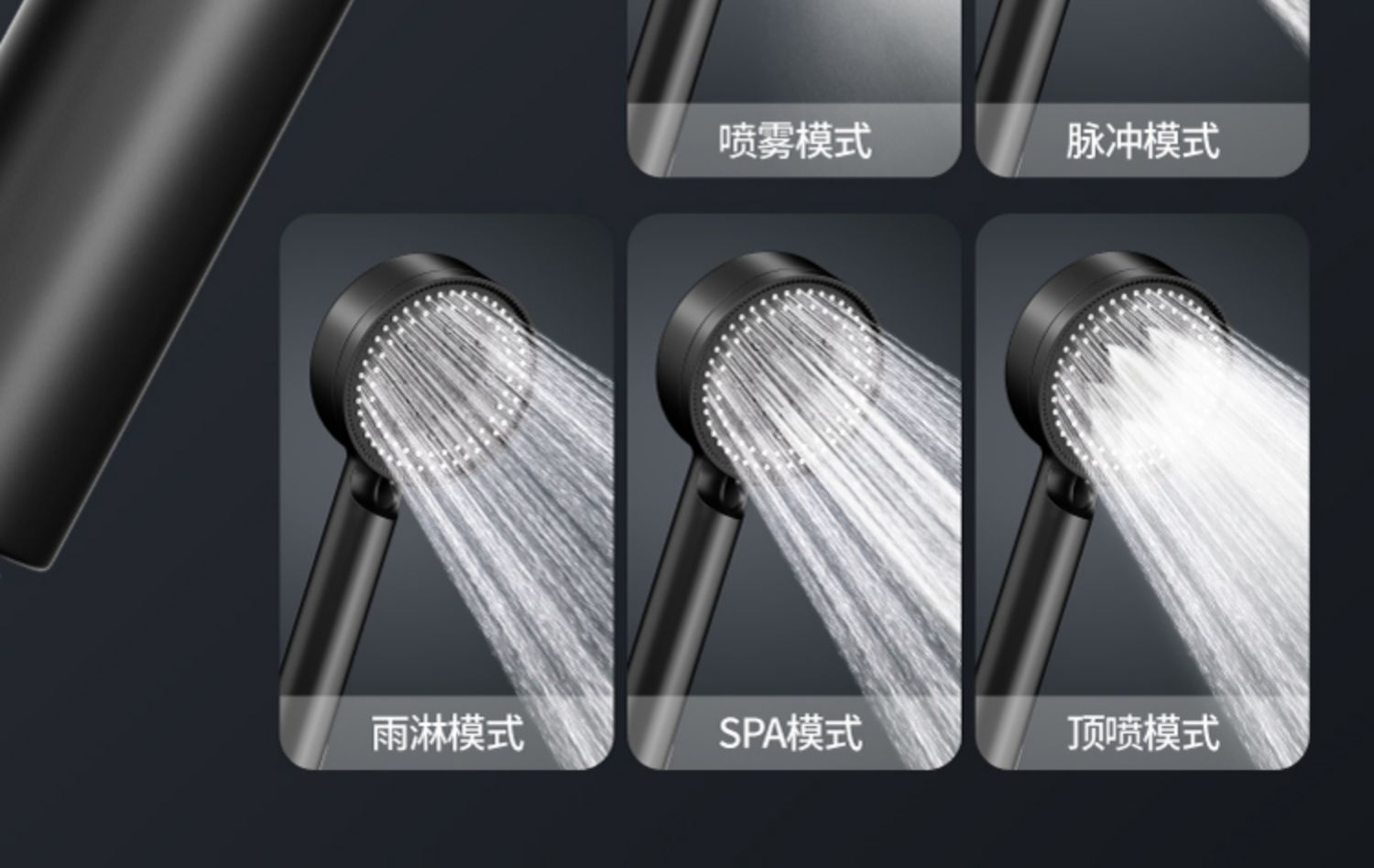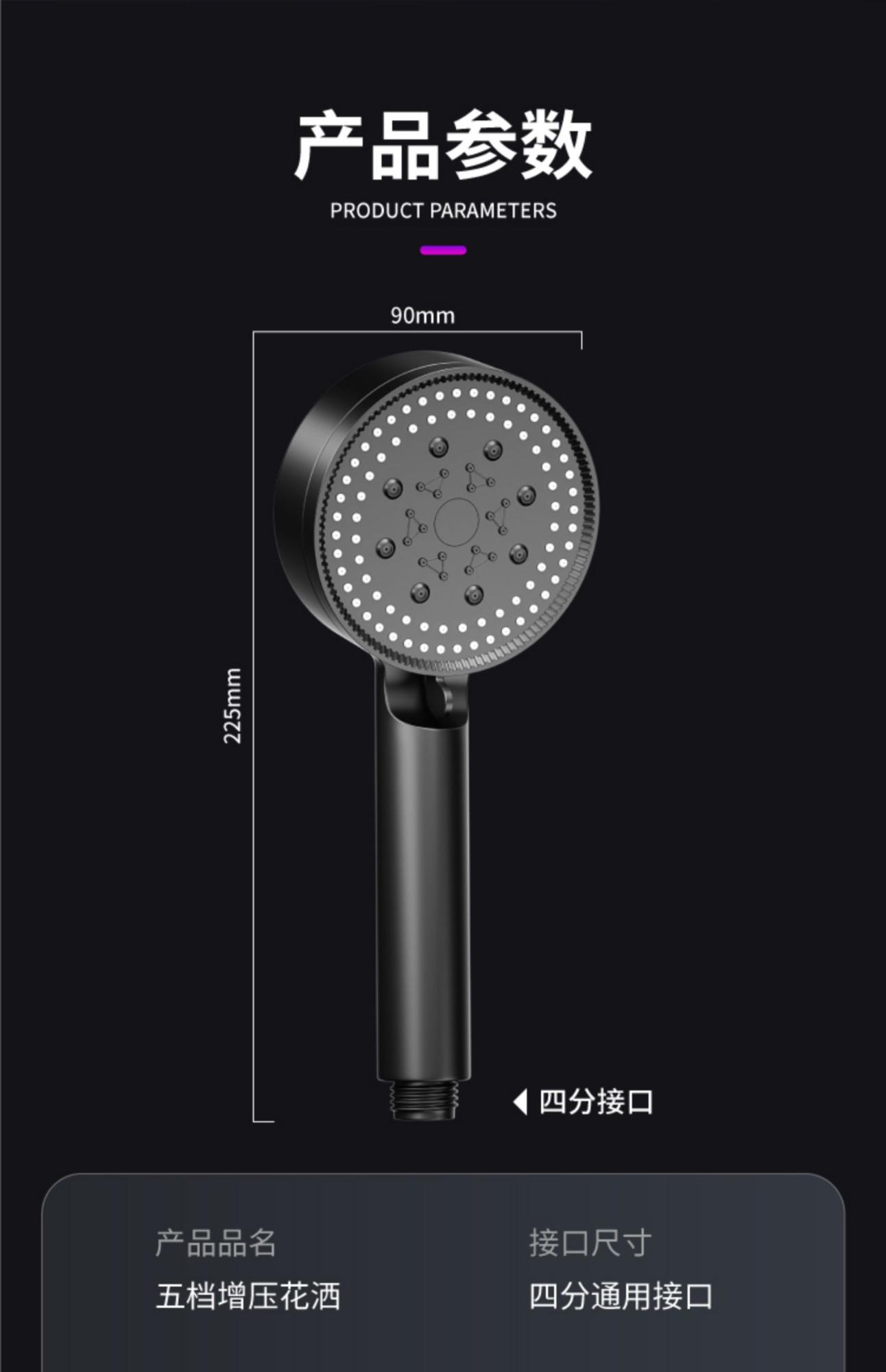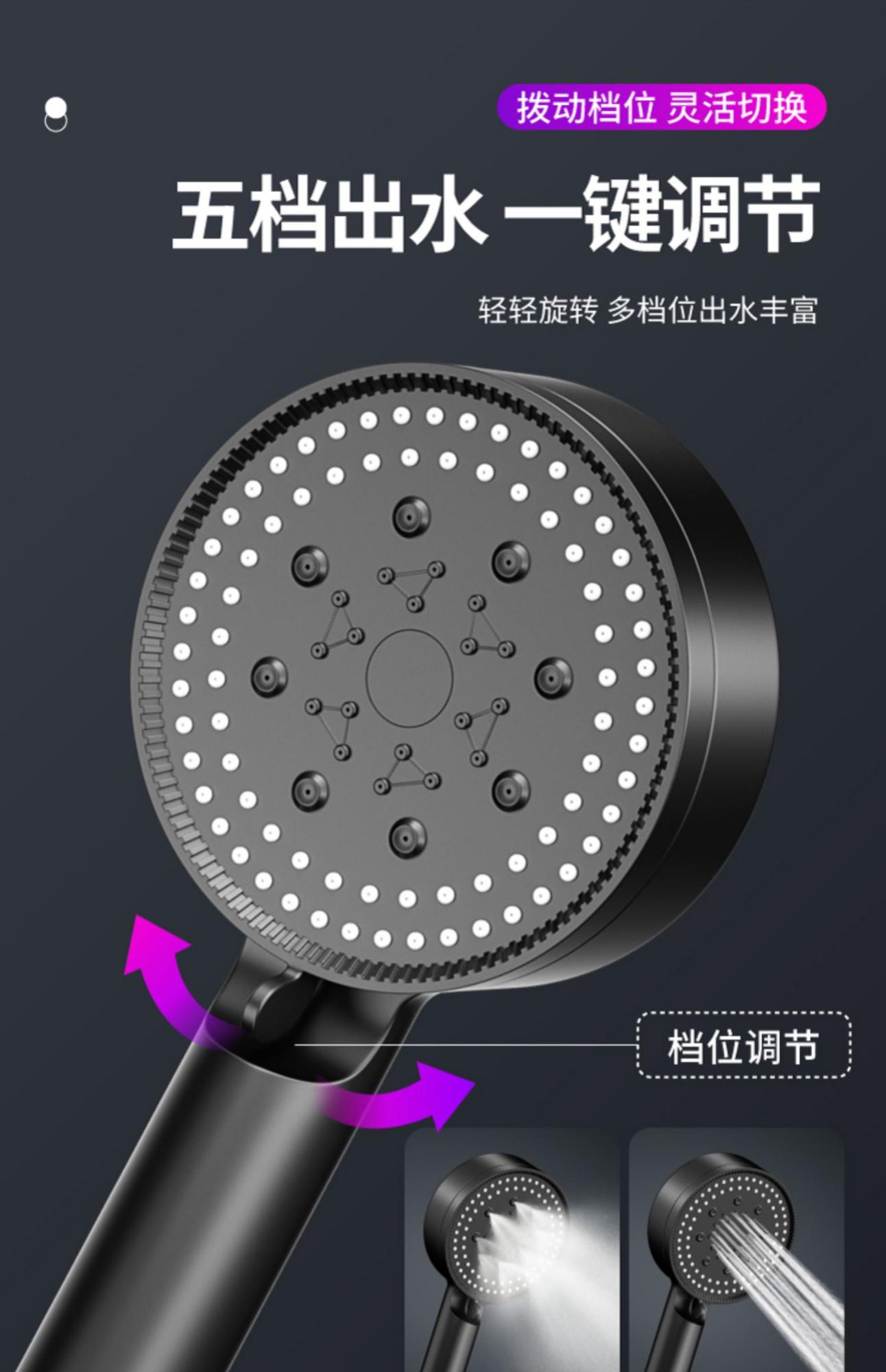 - 规格:【5档增压花洒●大出水量】曜石黑