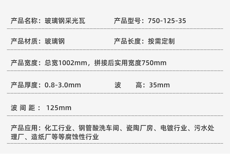 - 规格型号:750-125#1米宽-0.8厚