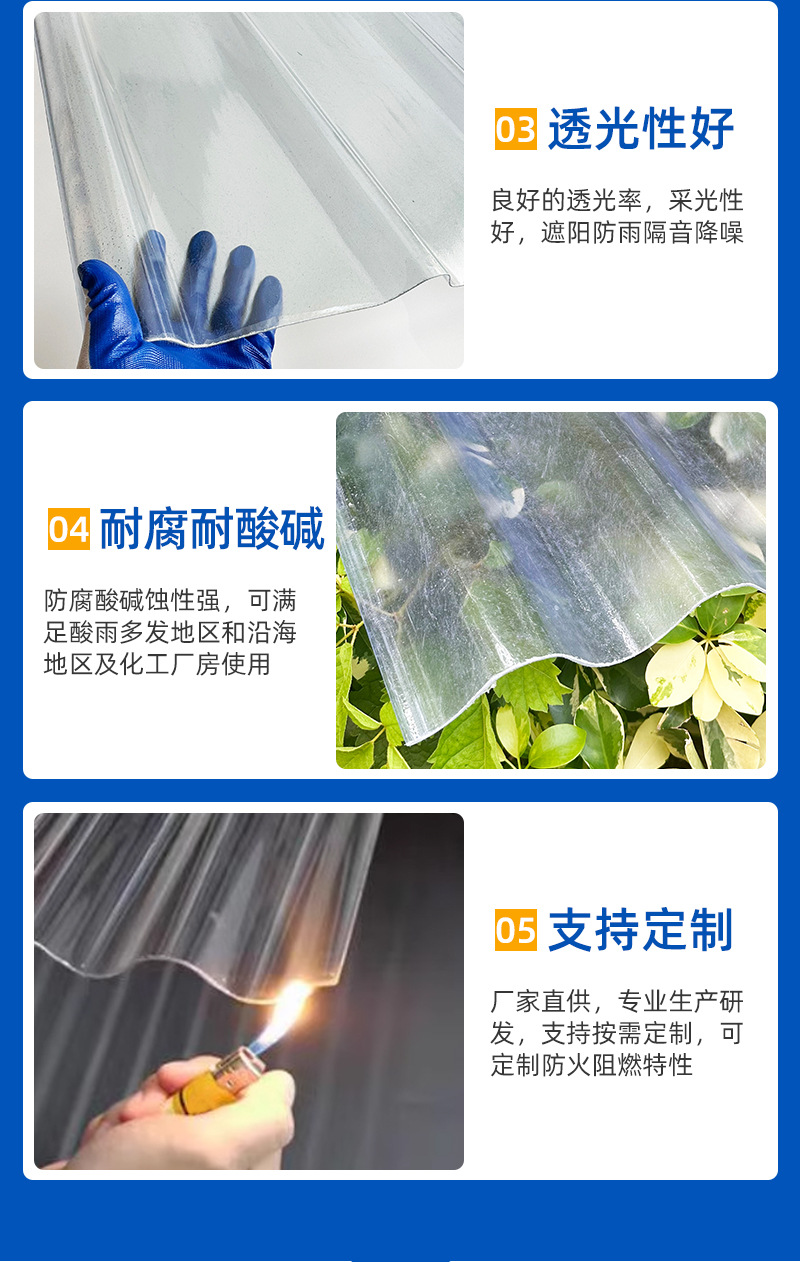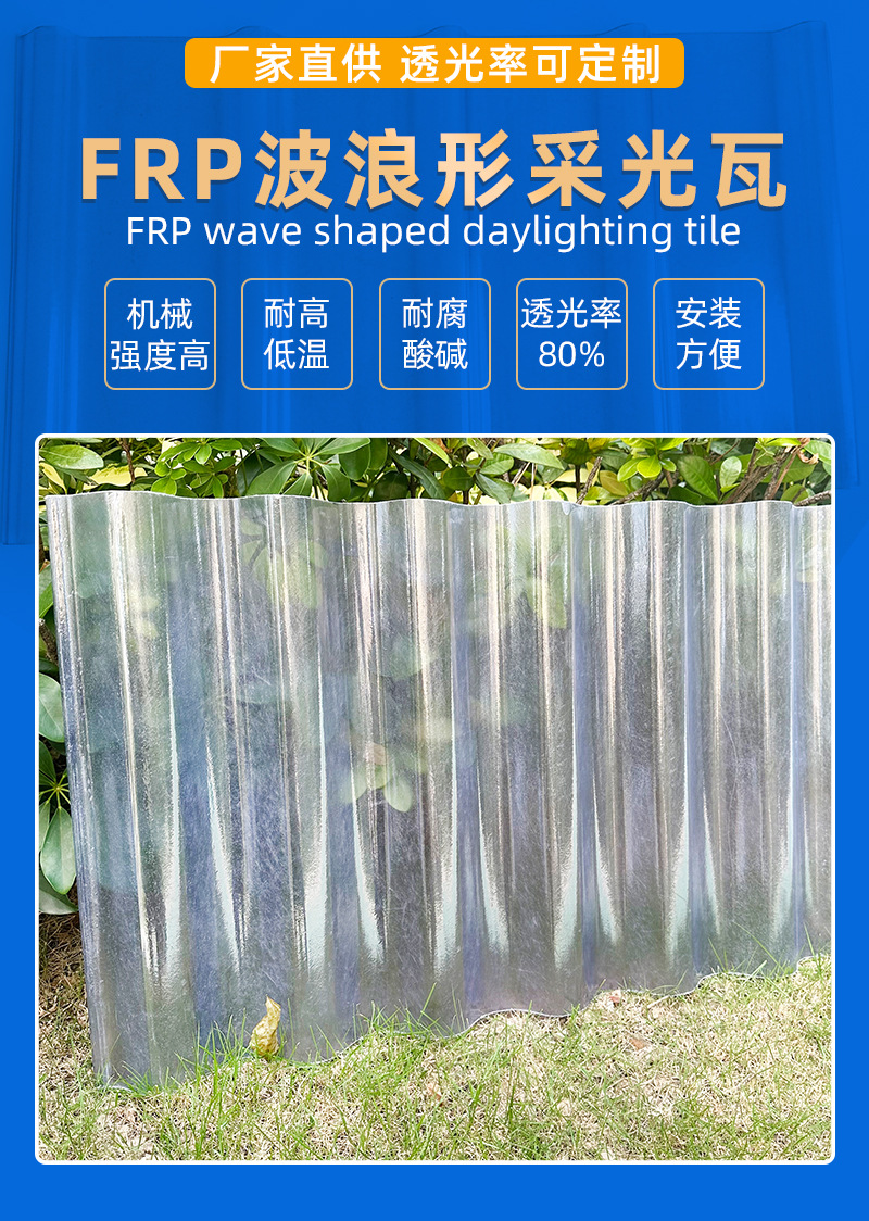 佛山厂家批发FRP玻璃钢采光瓦厂房屋顶专用波浪型透明瓦防腐透光