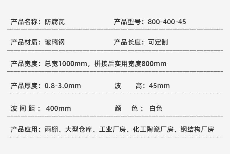 800型FRP防腐瓦工业厂房雨棚屋面耐腐蚀玻璃钢防腐瓦隔热瓦定 制