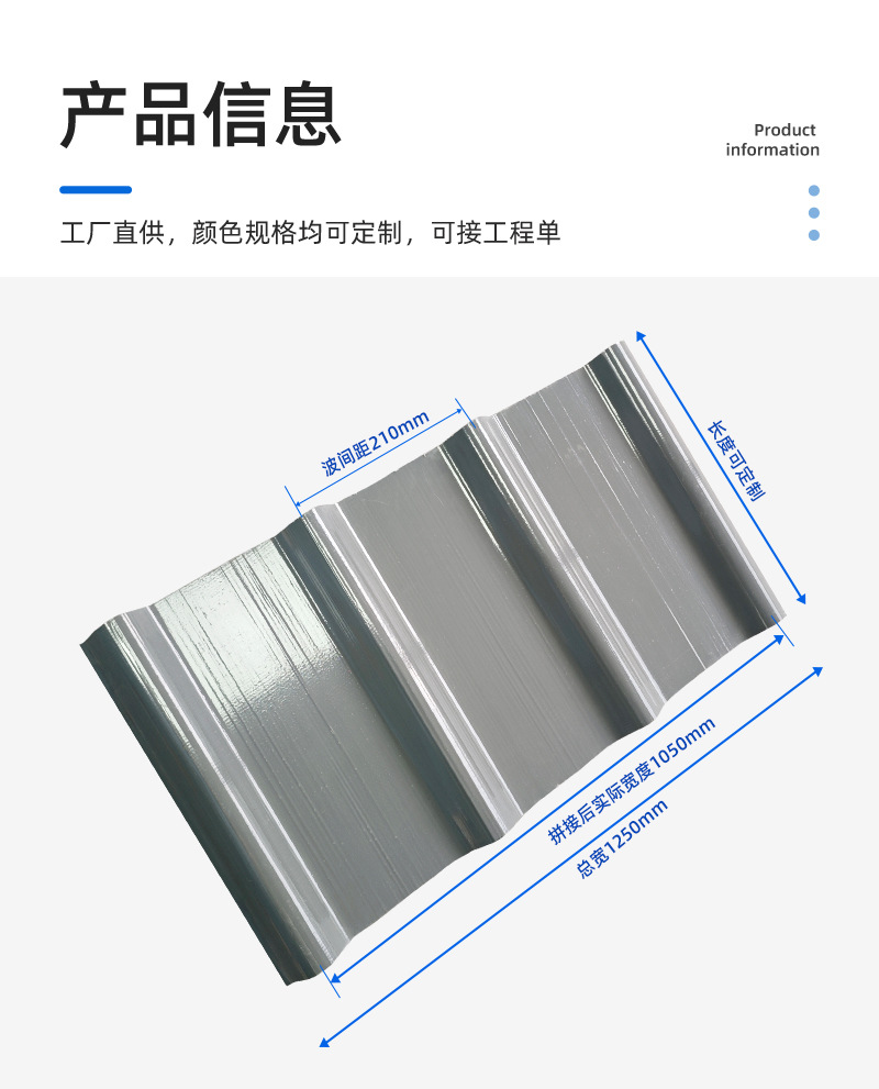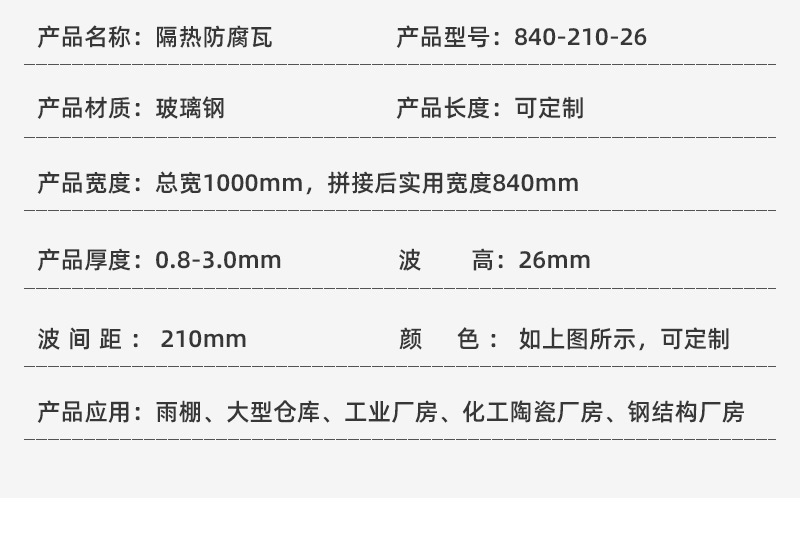 840型FRP玻璃钢防腐瓦耐酸碱玻璃纤维瓦养殖棚厂房屋面瓦厂家批发